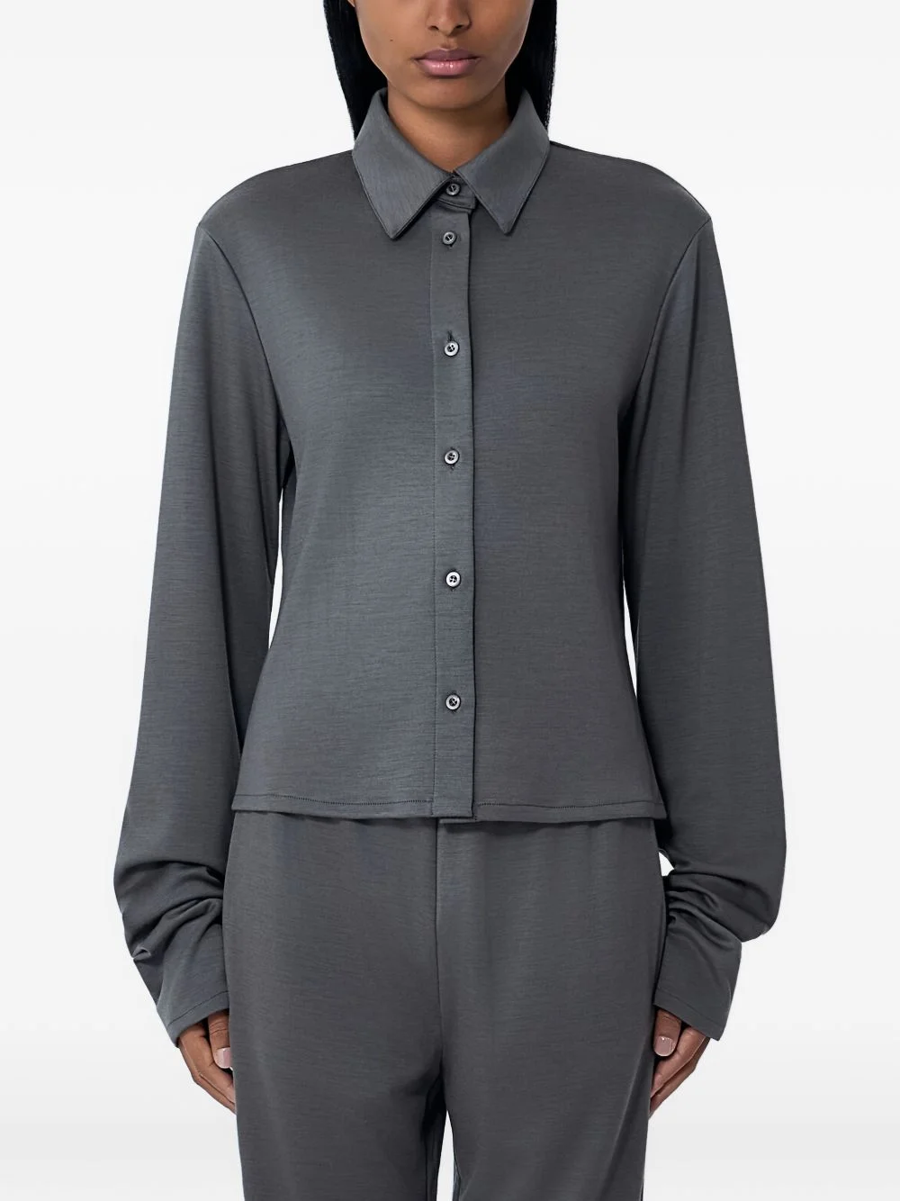 button-down long-sleeved shirt Highlights - Grey - Classic collar - Front button fastening - Long sleeves - Button detail Made in Italy Composition Wool 100% Washing instructions Read Manufacturer Guidelines