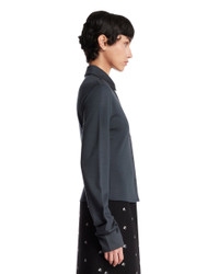 Rier Shirt Polar Plombe. Gray wool, classic structured collar, long sleeves, no cuffs and mother of pearl buttons on front fastening. Regular fit. Anis is 178 cm and she is wearing size S. DETAILS Model: SHT31INTPLO Composition: 100% Virgin Wool Made in: ITALY Season: FW25-26