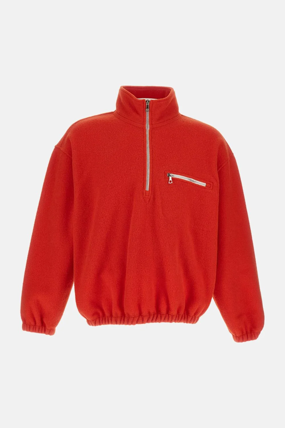 High-neck zip-up sweatshirt in wool with metal zipper, oversized fit, elasticated waist and cuffs, chest pocket, orange color Details and Care Color: Arancione Composition: 100% WO Made in: Austria Sku: NFL1X02ORANGE