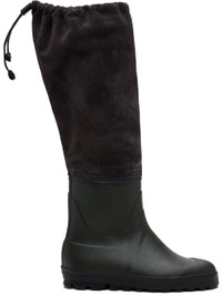 Knee-high paneled rubber and suede boots. · Textured rubber cap toe · Drawstring at collar · Suede and neoprene lining · Treaded rubber sole Supplier color: Velour anthracite Upper: rubber, leather. Sole: rubber. Made in Austria 252661F115000
