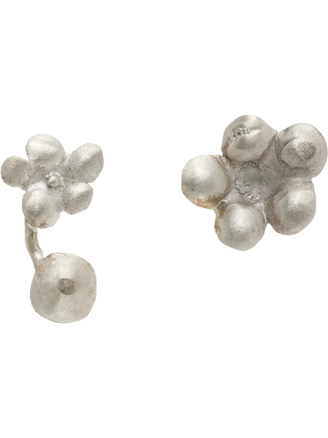 Pair of handcrafted mismatched stud earrings in sterling silver. · Floral accent at face · Post-stud fastening · H0.75" x W0.25"; H0.5" x W0.5" Supplier color: Silver 925 sterling silver. Made in France 252661F009000