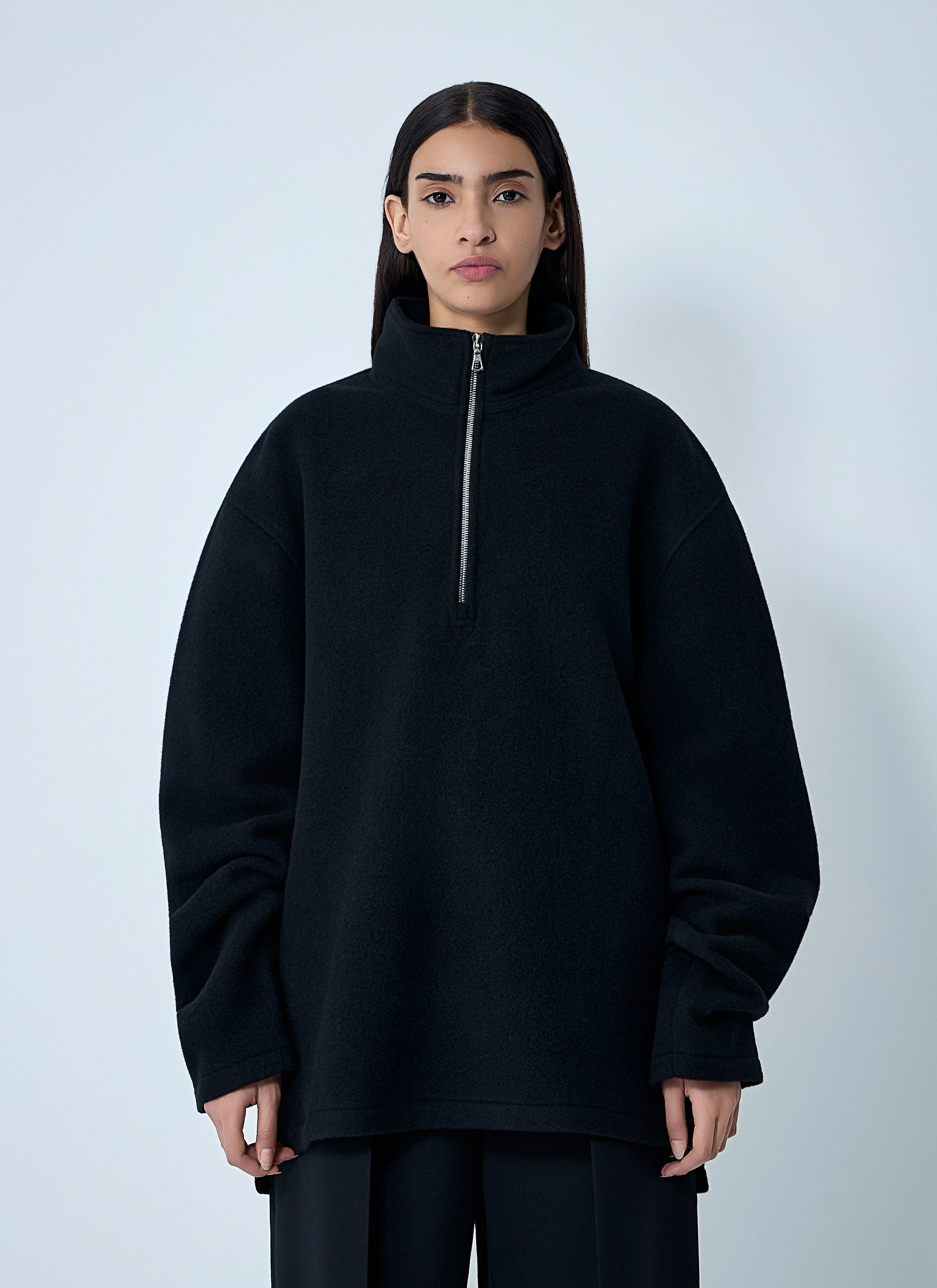 Wool zip-up sweatshirt. - Stand collar - Front zip fastening - Long sleeves - Straight hem - 100% Wool. Hand wash - Color: Black - Code: NFL15 X02 - NATURAL FLEECE BLACK FLEECE