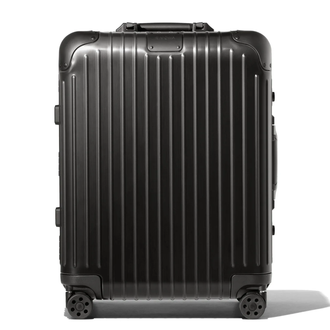 The unmistakable RIMOWA Original aluminum suitcase with its distinctive grooves is regarded as one of the most iconic luggage designs of all time. Made from high-end anodized aluminum, the RIMOWA Original Cabin Plus in black is engineered with longevity in mind. Remarkably robust and surprisingly lightweight, the timeless classic is an unparalleled example of craftsmanship and innovation. This extra spacious carry-on luggage provides just a little extra room for up to 4 days of travel. Designed and engineered in Germany. Includes a complimentary leather luggage tag and sticker set. Key elements TSA-Approved Locks Each of our suitcases features TSA-approved locks that can be opened by security during airline baggage checks without causing any damage. Flex Divider Packed items are kept in perfect order during transit with the height adjustable Flex Divider, which can be adapted to suit your belongings. Multiwheel® System Pioneered by RIMOWA, this high-end system guarantees stable and effortless steering thanks to ball-bearing mounted wheels with cushioned axels. Telescopic Handle Engineered to offer seamless stage-free adjustment for maximum comfort and smooth maneuverability. Size and Weight Measurement 22,1 x 17,8 x 9,9 INCH Weight 10,4 Lbs Volume 11,9 Gal Materials Outside: Aluminum Inside: Cotton Zippers: KK Metal Handles: Plastic Wheels: Polycarbonate Dividers: Cotton
