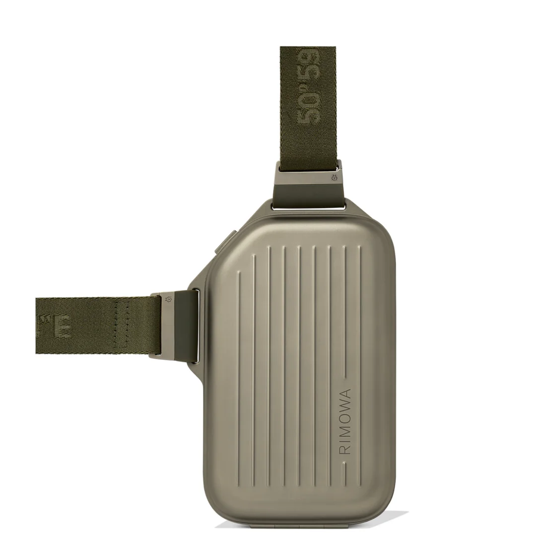 Made in Germany, the RIMOWA Personal collection offers the ultimate daily companions for those always on the move. The RIMOWA Personal - Aluminum Sling Clutch in titanium is a trendy and versatile bag that can be worn multiple ways across the body for a casual touch. Crafted in ultra-resistant grooved aluminum hard-shell, it features matte metallic pieces, an adjustable webbed strap adorned with jacquard coordinates of the brand’s historic home, a leather interior, and a range of practical functionalities: - Two credit card slots - 1 main compartment - A secured closing system Key elements Convenient Interior Crafted from full-grain Italian leather, the interior features one open compartment secured with gussets and two credit card slots. It is emblazoned with the RIMOWA logo and coordinates of the brand's historic manufacture in Cologne. Shoulder Strap The unique webbing strap is emblazoned with the coordinates of RIMOWA's historic manufacture in Cologne. Secured Closing System The closing system is secured with a mechanic lock. Aluminum Shell Made in Germany, the RIMOWA Personal Sling Clutch is crafted from our iconic grooved aluminum, with finishings that match the RIMOWA Original suitcase collection. Size and Weight Measurement 8.0 x 5.1 x 1.7 inch Weight 1.1 lbs Volume 0.1 gal Materials Exterior : Aluminum Interior : Full Grain Leather Strap : Nylon Hardware finishing touch : Matte Titanium-Colored