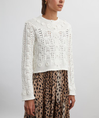 DETAILS Kyra Cotton Crochet Cardigan Cotton crochet Georgette contrast Floral detailing Boxy fit Cropped silouette Button fastening to the front Cream colourway SIZE & FIT Model is 176cm/5'7"; Chest: 76.5cm; Waist: 61.5cm; Hip: 88cm and wears a size 8 COMPOSITION & CARE 100% Cotton Hand wash cold
