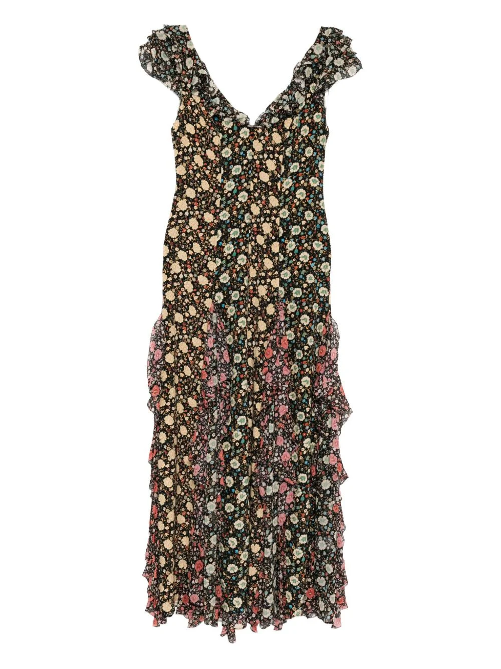 Ambika dress Highlights - Black - V-neck - Ruffled detailing Imported Composition Silk 100% SIZE & FIT Model measurements Height 5 ft 10 in(1.78 m) Bust/Chest 31.88 in(81 cm) Hips 37 in(94 cm) Waist 25.19 in(64 cm) FittingInformation Designed for a slim fit that sits just away from the body offering a close yet comfortable fit Made from a lightweight non-stretch fabric Washing instructions Dry Clean Only
