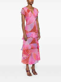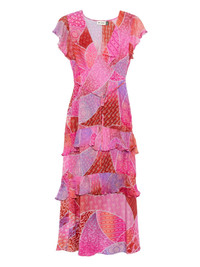 patchwork ruffled midi dress Highlights Imported Composition Outer: Silk 100%, Viscose 100% Lining: Polyester 100% SIZE & FIT Model measurements Height 5 ft 11 in(1.8 m) Bust/Chest 31.49 in(80 cm) Hips 36.61 in(93 cm) Waist 24.4 in(62 cm)