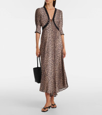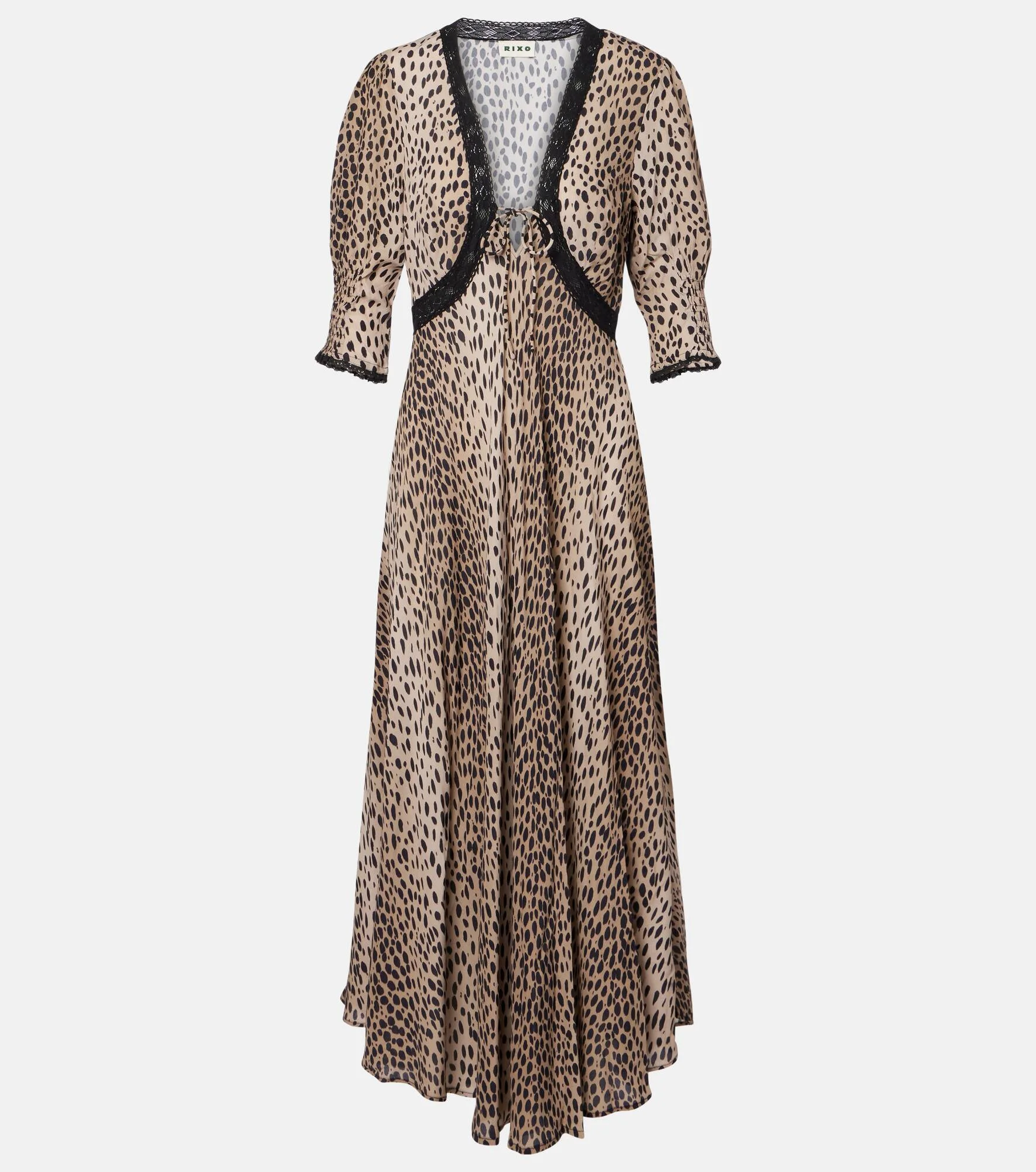 Forget the endless search for hidden gems, Rixo vintage-inspired dresses beat any flea market find. The Amina midi dress is crafted from crepe de chine with an allover leopard print and complete with lace trims. Product Details - Material: 100% viscose - Care instructions: dry clean - Made in India - Designer color name: Antelope Spot Black - Item color: black, beige - Collar: V-neck - Self-tie collar - Item number: P01084143 Size & Fit - True to size - Cinched waist - Non-stretchy fabric - The model seen in the picture is 178cm-5'10" and wearing a size XS
