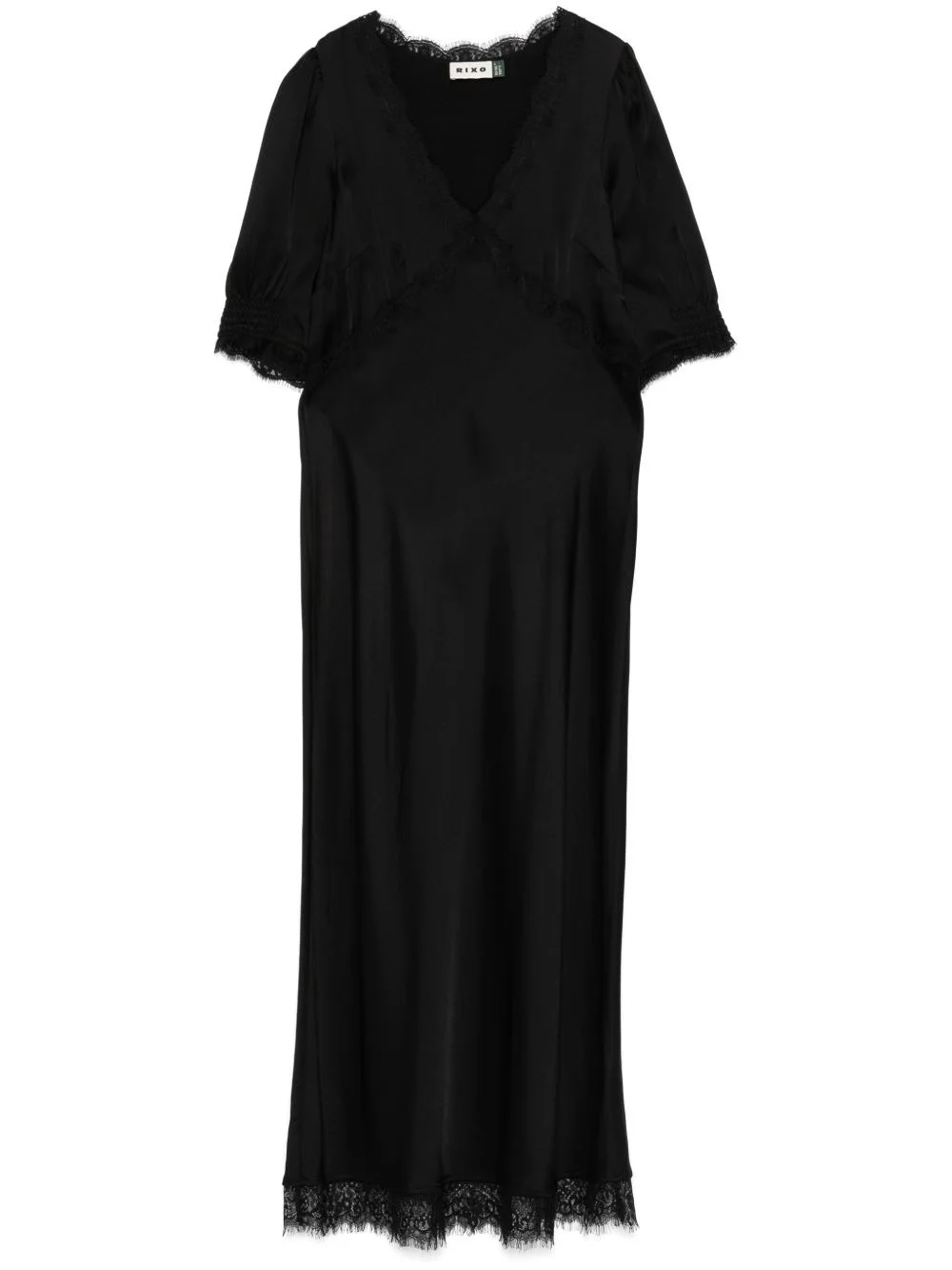 Annina dress Highlights - Black - Satin finish - Side zip fastening - V-neck - Lace detailing - Short puff sleeves - Unlined - Bias cut Imported Composition Outer: Viscose 100% Lining: Polyester 100% SIZE & FIT Model measurements Height 5 ft 10 in(1.78 m) Bust/Chest 33.46 in(85 cm) Hips 36.22 in(92 cm) Waist 23.22 in(59 cm) FittingInformation Designed for a close fit throughout Made from a midweight non-stretch fabric Washing instructions Dry Clean Only