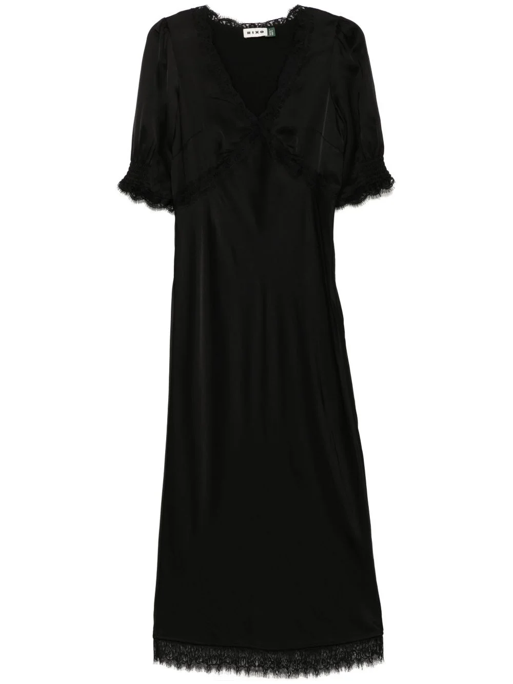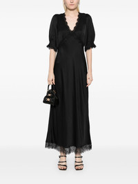 Annina midi dress Highlights - Black - Concealed side hook and zip fastening - Lace trim - Fringed edge - V-neck - Short sleeves - Shirred cuffs - Mid-length Imported Composition Lining: Polyester 100% Outer: Viscose 100% SIZE & FIT Model measurements Height 5 ft 9 in(1.76 m) Bust/Chest 31.1 in(79 cm) Hips 35.03 in(89 cm) Waist 24.4 in(62 cm) FittingInformation Designed for a close fit at the chest with a loose fit over the waist and hips Made from a lightweight non-stretch fabric Washing instructions Dry Clean Only