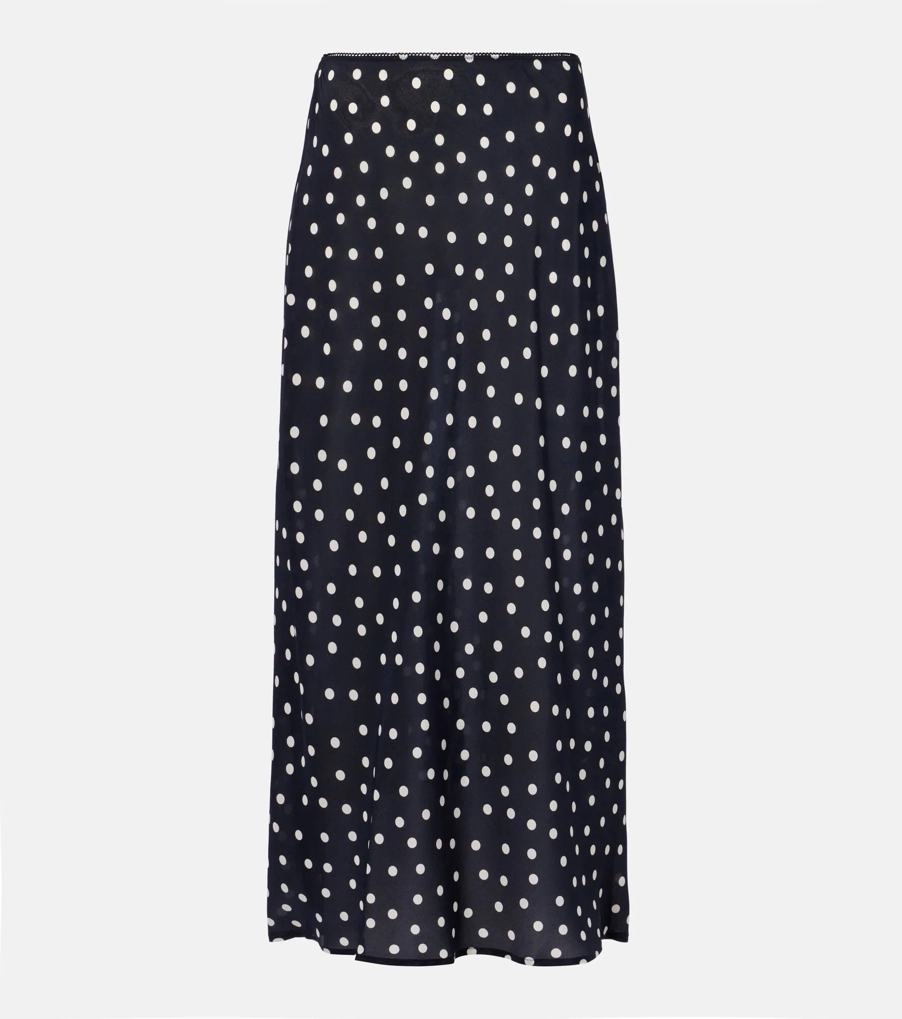 Stylish and comfortable, Rixo's Ardith midi skirt is the best of both worlds. This versatile style features an elasticated waistband and straight silhouette, adorned with an allover polka-dot motif. Product Details - Material: 100% silk - Care instructions: dry clean - Made in China - Designer color name: Bohemia Spot Navy - Item color: blue, white - Elasticated waistband - Unlined - Item number: P01084150 Size & Fit - True to size - Elasticated waist - Non-stretchy fabric - The model seen in the picture is 178cm-5'10" and wearing a size XS