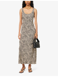 PRODUCT DETAILS - Rixo woven midi dress - 100% viscose - Regular fit, scoop neck, shoulder straps, all-over animal pattern - Dry clean - True to size - Size small: length 53in / 135cm - Model is 5ft 10in/1.78m and wears a size small - Lightweight, non-stretch Ref: R04486399