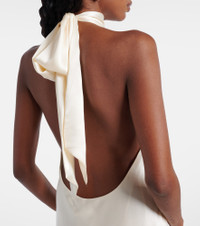 The Rixo Capucine minidress is made from pure silk satin and features a halterneck self-tie and a low open back. Fully lined, the design has an elegant sheen, perfect for parties and other occasions. Product Details - Material: 100% silk - Care instructions: dry clean - Made in China - Designer color name: Champagne - Item color: white - Lining: 100% viscose - Self-tie neck - Fully lined - Item number: P01039601 Size & Fit - True to size - Low back - Semi-sheer - Cinched waist - Non-stretchy fabric - The model seen in the picture is 178cm-5'10" and wearing a size XS