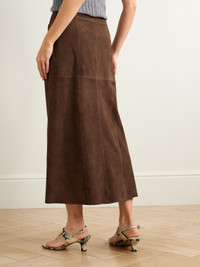 Edwina Embellished Paneled Suede Midi Skirt