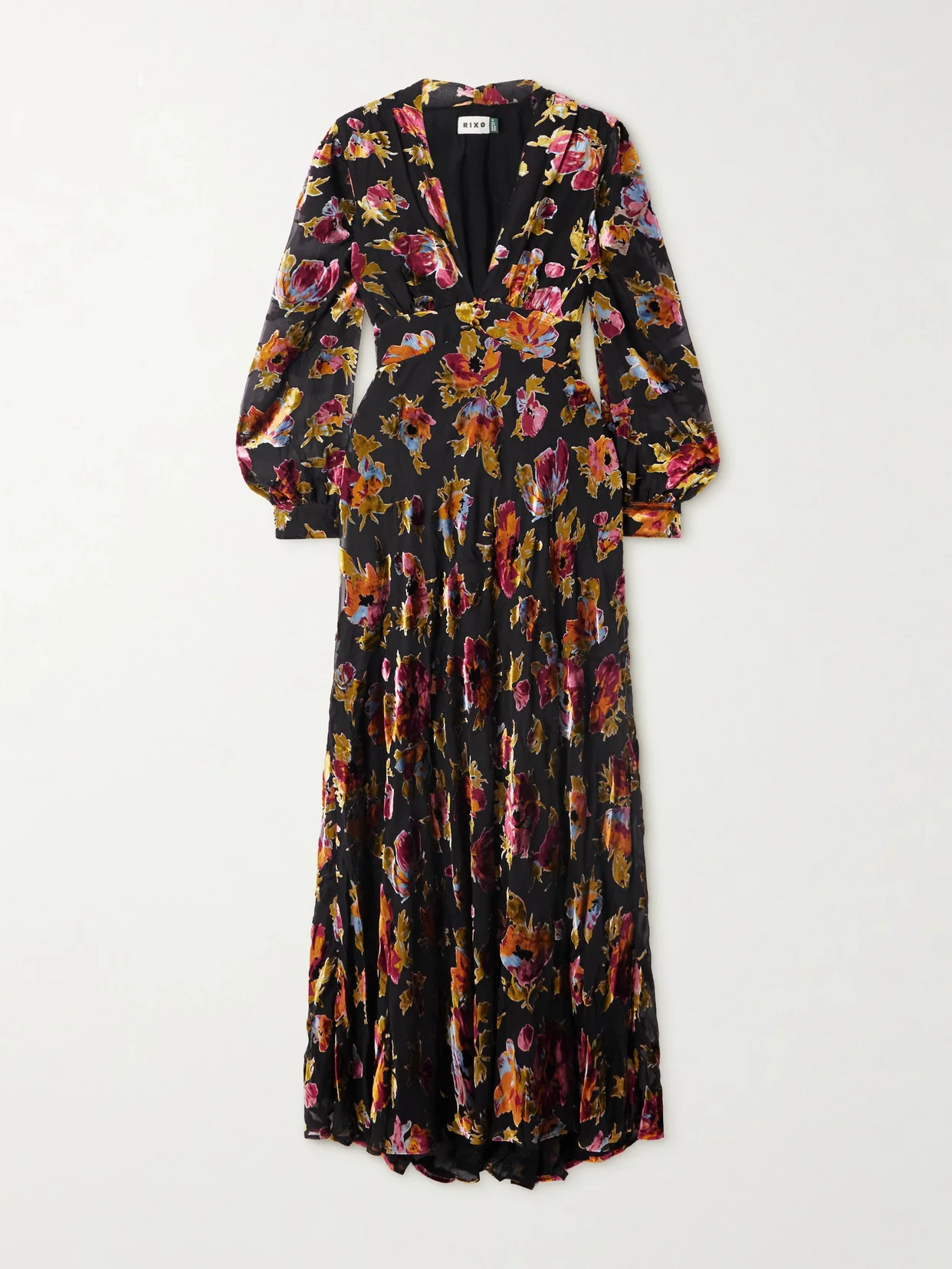 RIXO's collections draw inspiration from vintage upholstery and wallpaper. Cut from floral-print devore-velvet, this 'Emory' dress has breezy blouson sleeves and a plunging neckline. Wear yours with mules and a small tote.