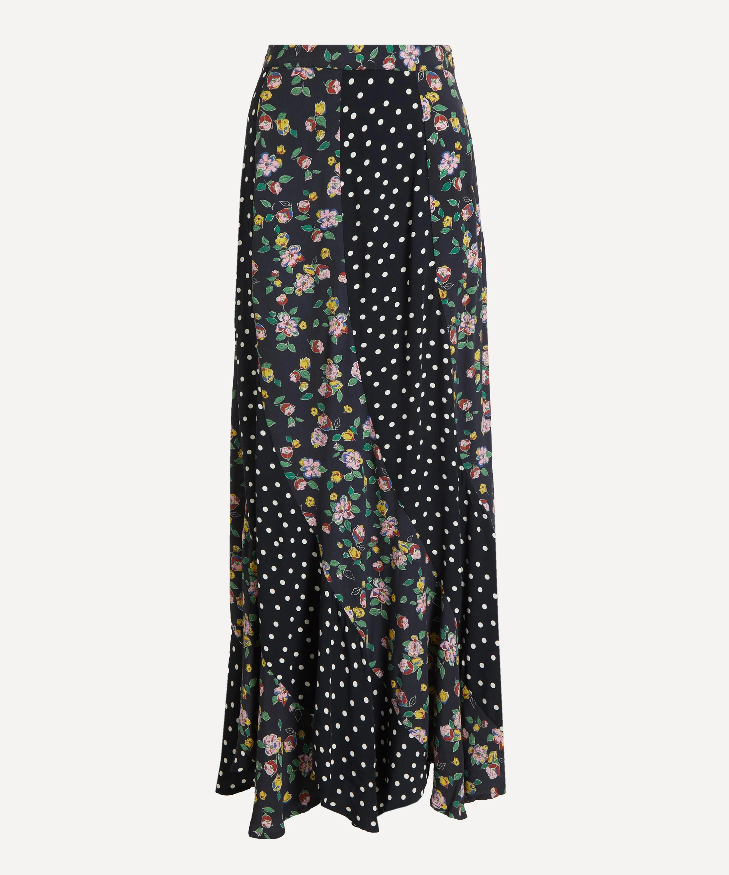 DETAILS Crepe skirt Fits true to size Fitted at waist Midi length Bias-cut Contrasting floral and polka-dot printed panels Concealed side zip SIZE & FIT Model is 178cm/5'10"; Chest: 77cm; Waist: 65cm; Hip: 92cm and wears a size 8 COMPOSITION & CARE 100% Viscose Dry clean