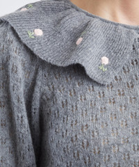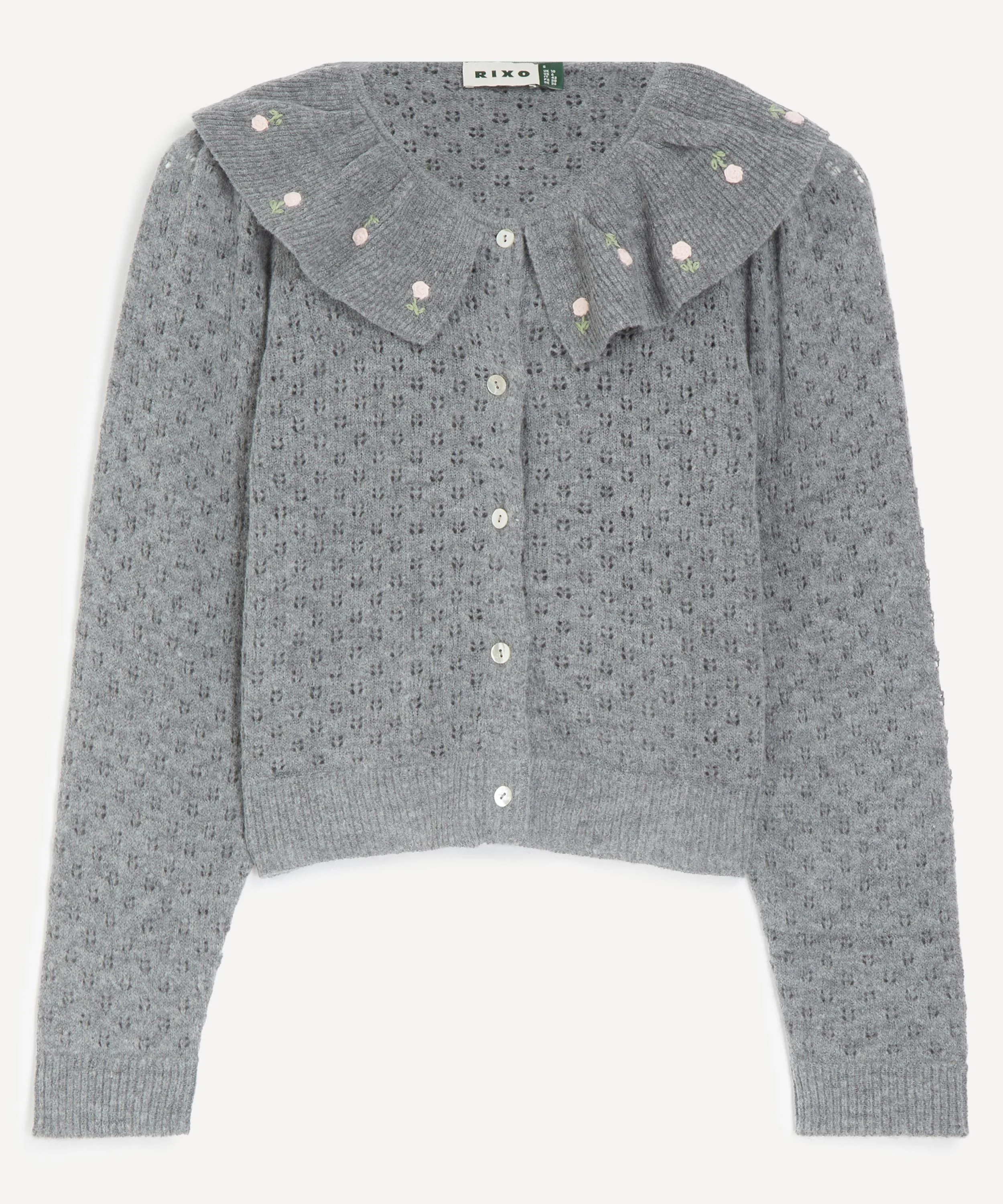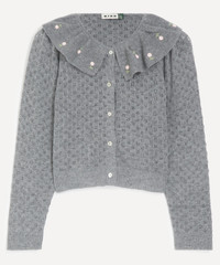 DETAILS Pointelle-knit cardigan Fits true to size Boxy fit Long sleeves Oversized ruffled collar Front button fastening Ribbed trims Bud embroidery SIZE & FIT Model is 175cm/5'9"; Chest: 76cm; Waist: 58cm; Hip: 90cm and wears a size 8 COMPOSITION & CARE 52% Nylon; 23% Acrylic; 19% Wool; 6% Alpaca Hand wash