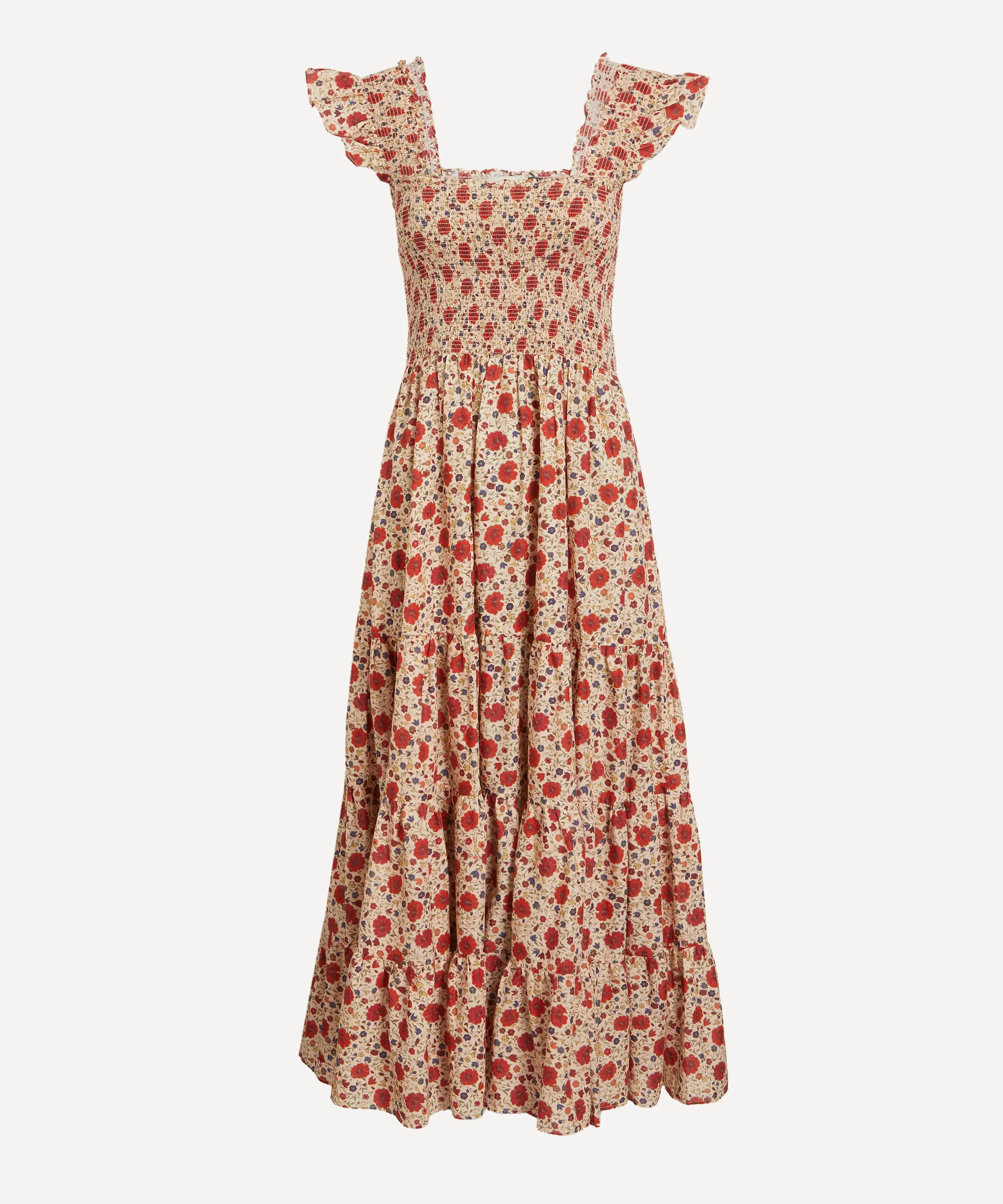DETAILS Cotton voile dress Fits true to size Midi length Square neckline Ruffled straps Smocked bodice Tiered skirt Eva Floral print SIZE & FIT Model is 179cm/5'10.5"; Chest: 81cm; Waist: 64cm; Hip: 89cm and wears a size 8 COMPOSITION & CARE 100% Cotton Hand wash at 30°C