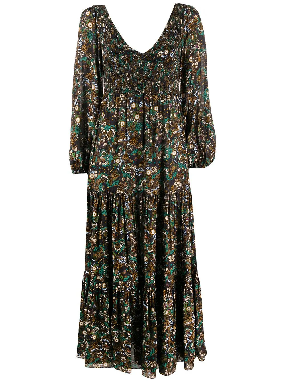 Lottie Klimt Wave-print tiered dress Multicoloured cotton-silk blend Lottie Klimt Wave-print tiered dress from Rixo featuring a flared style, a V-neck, long sleeves, a smocked waist, an elasticated waistband and a mid-length. Imported Composition Cotton 80%, Silk 20% SIZE & FIT Model measurements Height 5 ft 10 in(1.78 m) Bust/Chest 32.67 in(83 cm) Hips 35.82 in(91 cm) Waist 24.01 in(61 cm) FittingInformation This piece fits true to size. We recommend you get your regular size Designed for a close fit at the bust and waist, but loose at the hip Made with a lightweight fabric