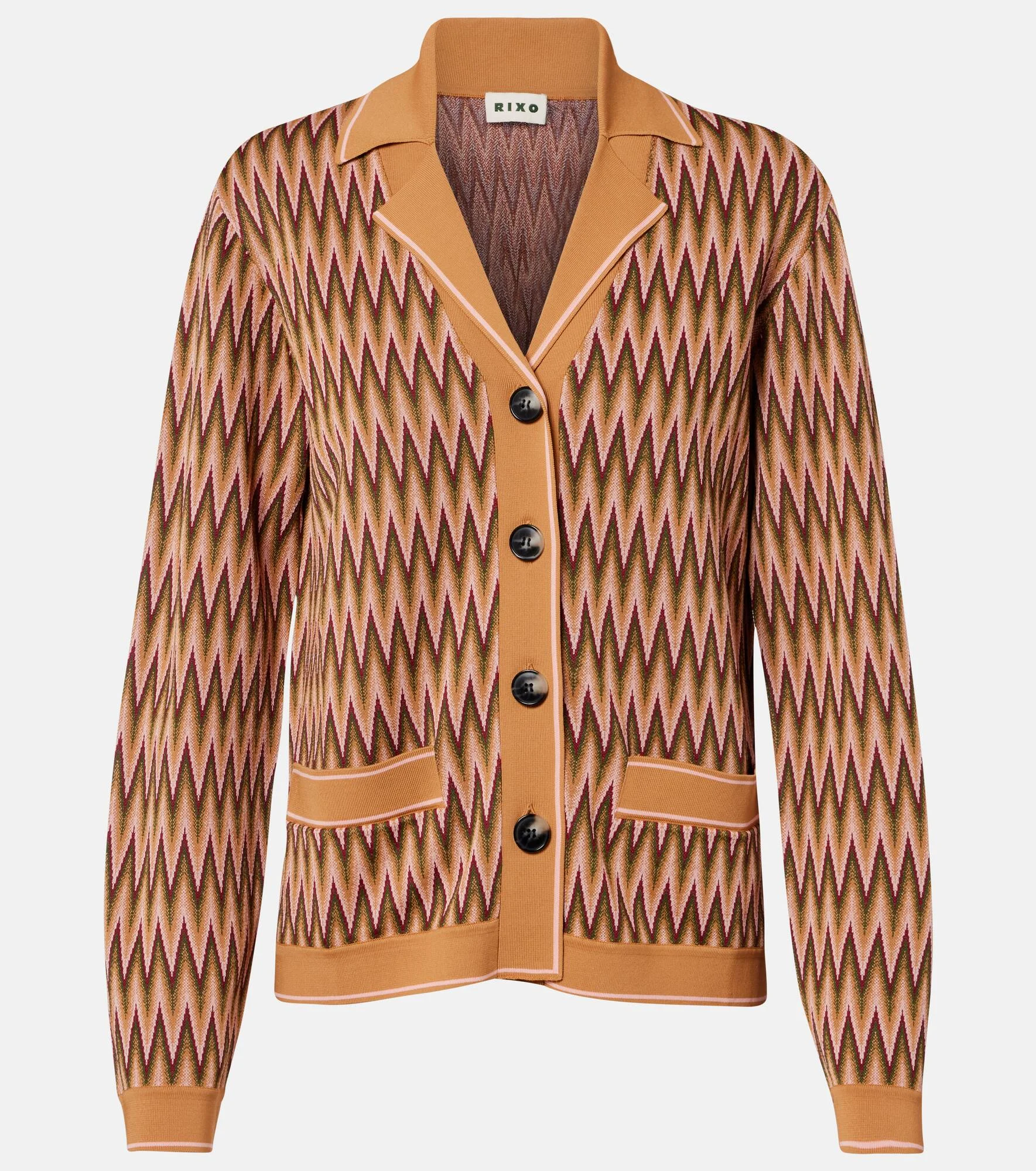 Showcasing a geometric jacquard motif in warm hues, the Quinley cardigan from Rixo boasts retro flair. The button-down design is finished with contrasting trims and a polished collar. Product Details - Material: 97% viscose, 2% polyamide, 1% elastane - Care instructions: hand wash - Made in China - Designer color name: Maeve Jacquard Multi - Item color: multicolor - Closure: buttoned front - Pockets: welt pockets - Cuff: ribbed - Hem: ribbed - Item number: P01114250 Size & Fit - True to size - Straight fit - Stretchy fabric - Falls to the hip - The model seen in the picture is 178cm-5'10" and wearing a size XS