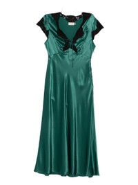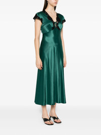 forest green satin finish lace trim V-neck cap sleeves tie fastening - Color: GREEN - Made in: China - Designer Style ID: AMARI FOGRE Composition and care Cotton: 79.0%, Polyamide: 21.0%, Viscose: 100.0%