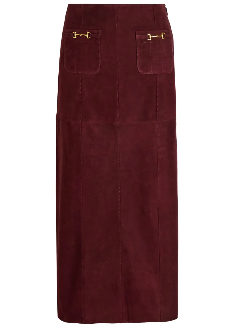 Rixo Edwina Horsebit-embellished Suede Midi Skirt