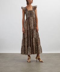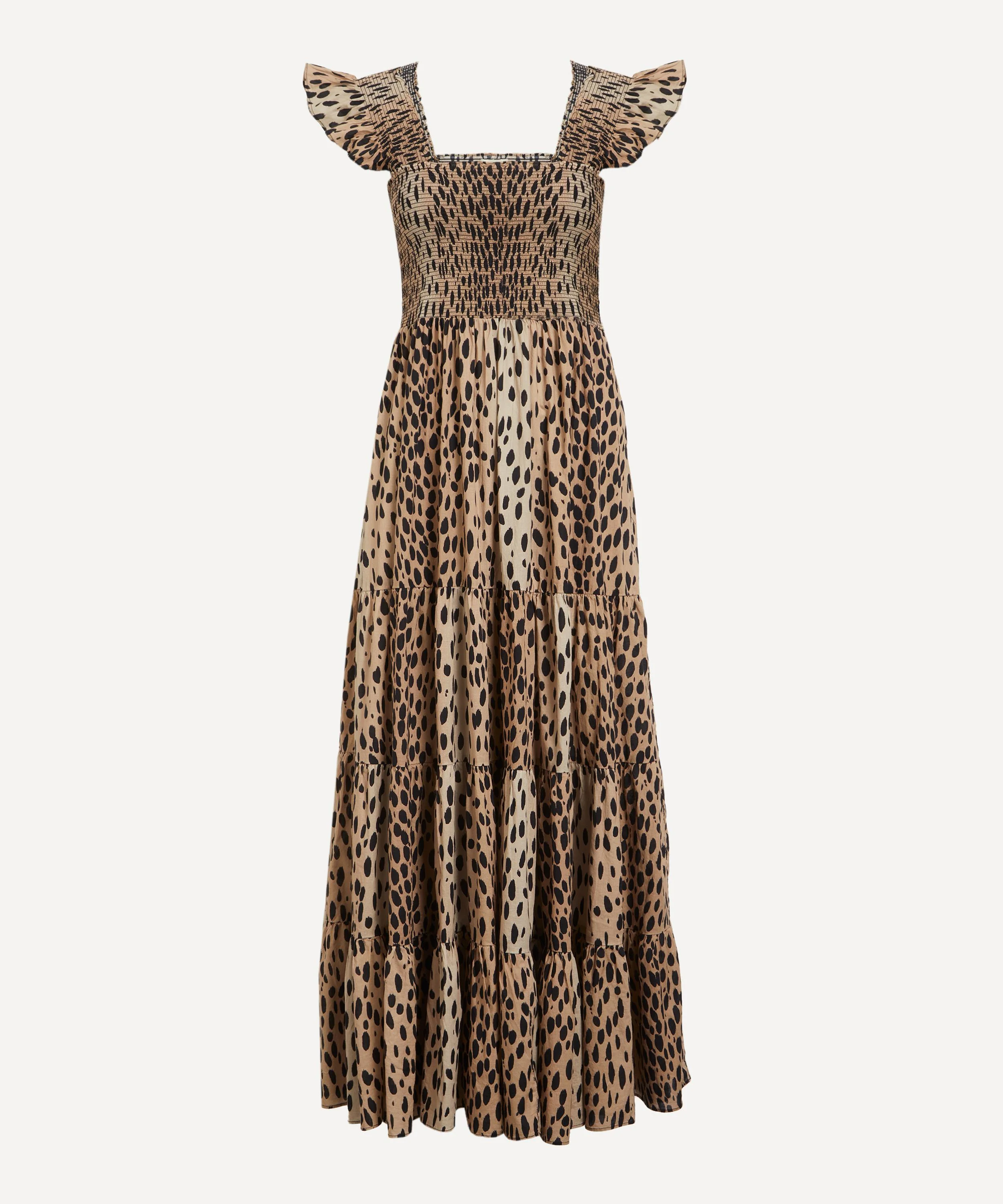 DETAILS Cotton midi dress Fits true to size Square neckline Ruffled straps Shirred bodice Full skirt Antelope Spot Black print SIZE & FIT Model is 176cm/5'7"; Chest: 76.5cm; Waist: 61.5cm; Hip: 88cm and wears a size 8 COMPOSITION & CARE 100% Cotton Dry clean