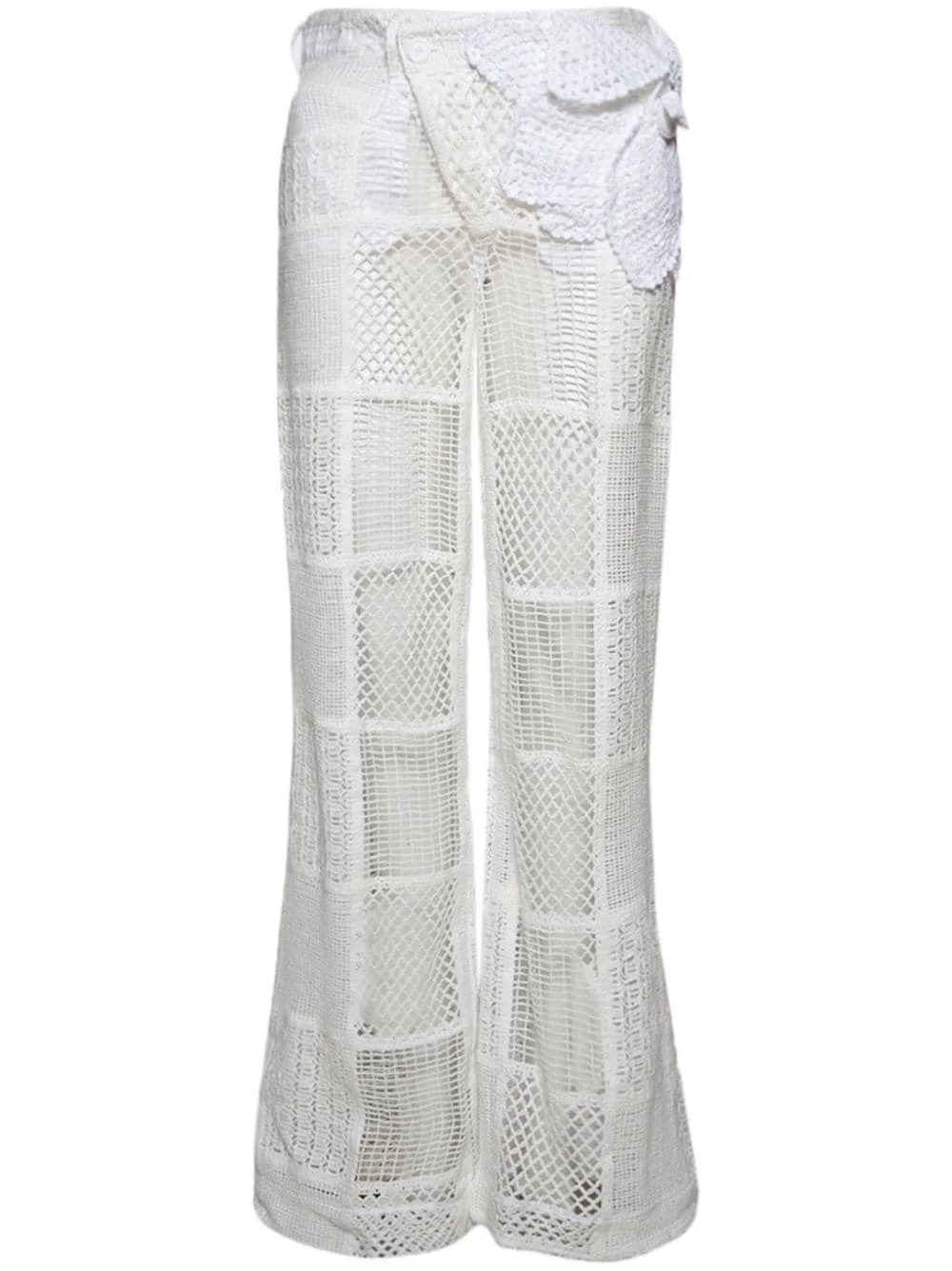 floral-applique boyfriend trousers Highlights - White - Cotton - Macrame fabric - Floral applique - High-waisted - Slip pockets to the sides - Wide leg Made in Italy Composition Cotton 100% Washing instructions Read Manufacturer Guidelines