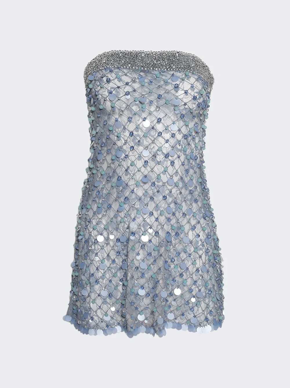 Details - Sheer, strapless mini - Stretch floral lace - Embroidered natural stones, sequins, and crystal beads - Elasticated top - Side zip closure - Material: 100% Polyester, Glass Size Information: Vendor Color Code: Brand Style: RESS25_F03 Designer/Brand: ROBERTA EINER