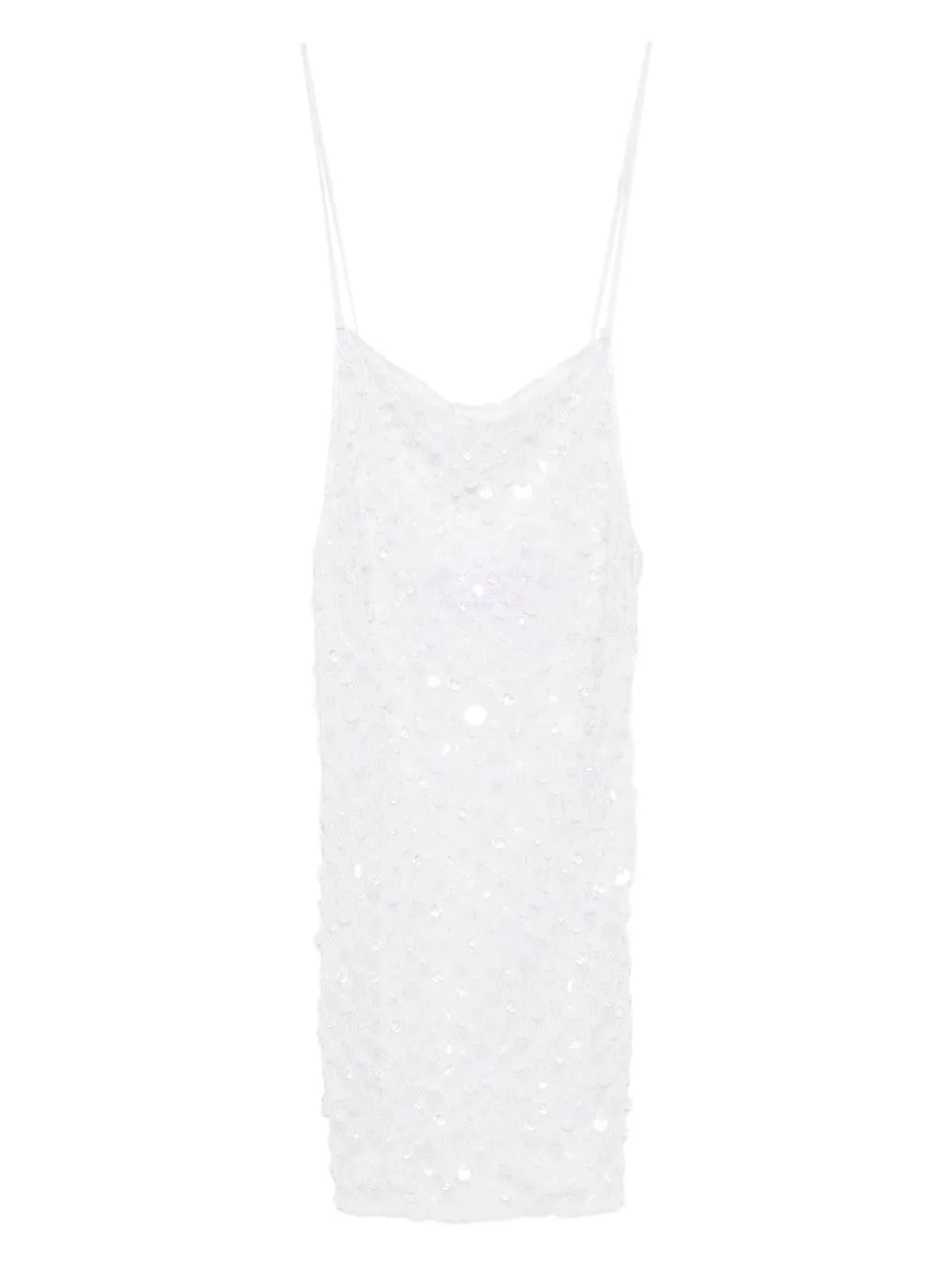 sequin-embellished mini dress Highlights - White Imported Composition Polyester 60%, Polyamide 40% SIZE & FIT Model measurements Height 5 ft 9 in(1.76 m) Bust/Chest 32.28 in(82 cm) Hips 35.43 in(90 cm) Waist 25.19 in(64 cm)