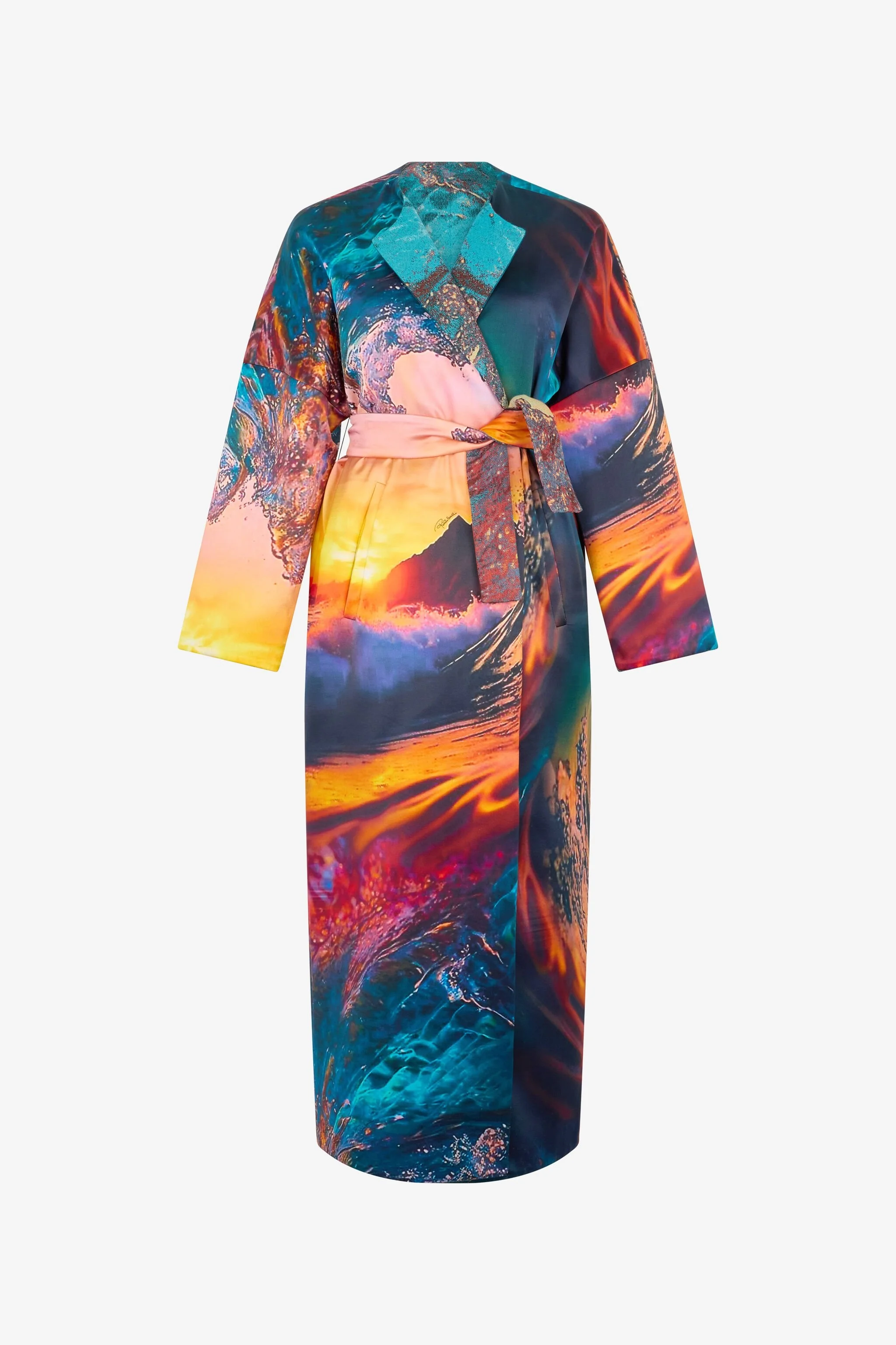 ID: UWT504-DJ091-D2394 This coat with Itaca Print is a wearable work of art. Its enveloping silhouette and waist belt define the figure, enhancing femininity with a touch of originality. Perfect for those who want to stand out with class and style. The model is 178 cm tall and wears size S. Details - Coat with matching belt - Exclusive design with Itaca Print - Comfortable fit - Made in: Italy - Ideal for a sophisticated and artistic look, perfect for special events or to add a touch of elegance to everyday life. Care & maintenance External fabric:53% Cotton, 47% Polyester / Secondary fabric:100% Silk