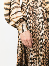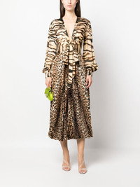animal-print knot-font midi dress brown/multicolour tiger print leopard print plunging V-neck knot detailing long sleeves buttoned cuffs empire line knee-length Made in Italy Composition Viscose 100% SIZE & FIT Model measurements Height 5 ft 10 in(1.77 m) Bust/Chest 35.43 in(90 cm) Hips 35.43 in(90 cm) Waist 24.01 in(61 cm) FittingInformation This piece fits true to size. We recommend you get your regular size Designed for a close fit at the bust and waist, but loose at the hip Made with a mid-weight non-stretch fabric