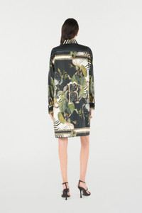 ID: UKT160-4QN82-D0141 The wild elegance that has always distinguished Roberto Cavalli's style is reinterpreted in this long silk shirt featuring a Jungle print enhanced by captivating snakes and the iconic Zebra motif. The model is finished with the Roberto Cavalli signature at the hem. Details - Long silk shirt - Jungle print with snakes and Zebra pattern - Roberto Cavalli signature - Classic collar - Long sleeves - Concealed front fastening with exposed first button - Roberto Cavalli label on the inside collar Care & maintenance External fabric:100% Silk