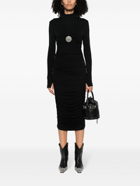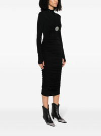 applique-detail ruched midi dress Highlights - Black - Stretch-design - Applique detail - Mock neck - Ruched detailing - Long sleeves - Rear zip fastening - Straight hem - Calf-length Made in Italy Composition Viscose 95%, Elastane 5% Washing instructions Dry Clean Only