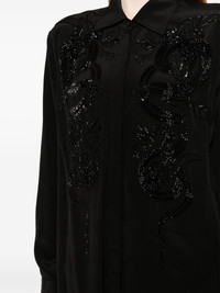 bead-embellished applique viscose shirt Highlights - Black - Bead embellishment - Applique detailing - Classic collar - Concealed front fastening - Long sleeves - Buttoned cuffs - Straight hem Made in Italy Composition Viscose 96%, Elastane 4% SIZE & FIT Model measurements Height 5 ft 9 in(1.75 m) Bust/Chest 31.88 in(81 cm) Hips 35.03 in(89 cm) Waist 23.22 in(59 cm) FittingInformation Designed to be unstructured, offering a loose fit throughout Made from a lightweight non-stretch fabric This piece fits true to size – take your usual size Washing instructions Dry Clean Only