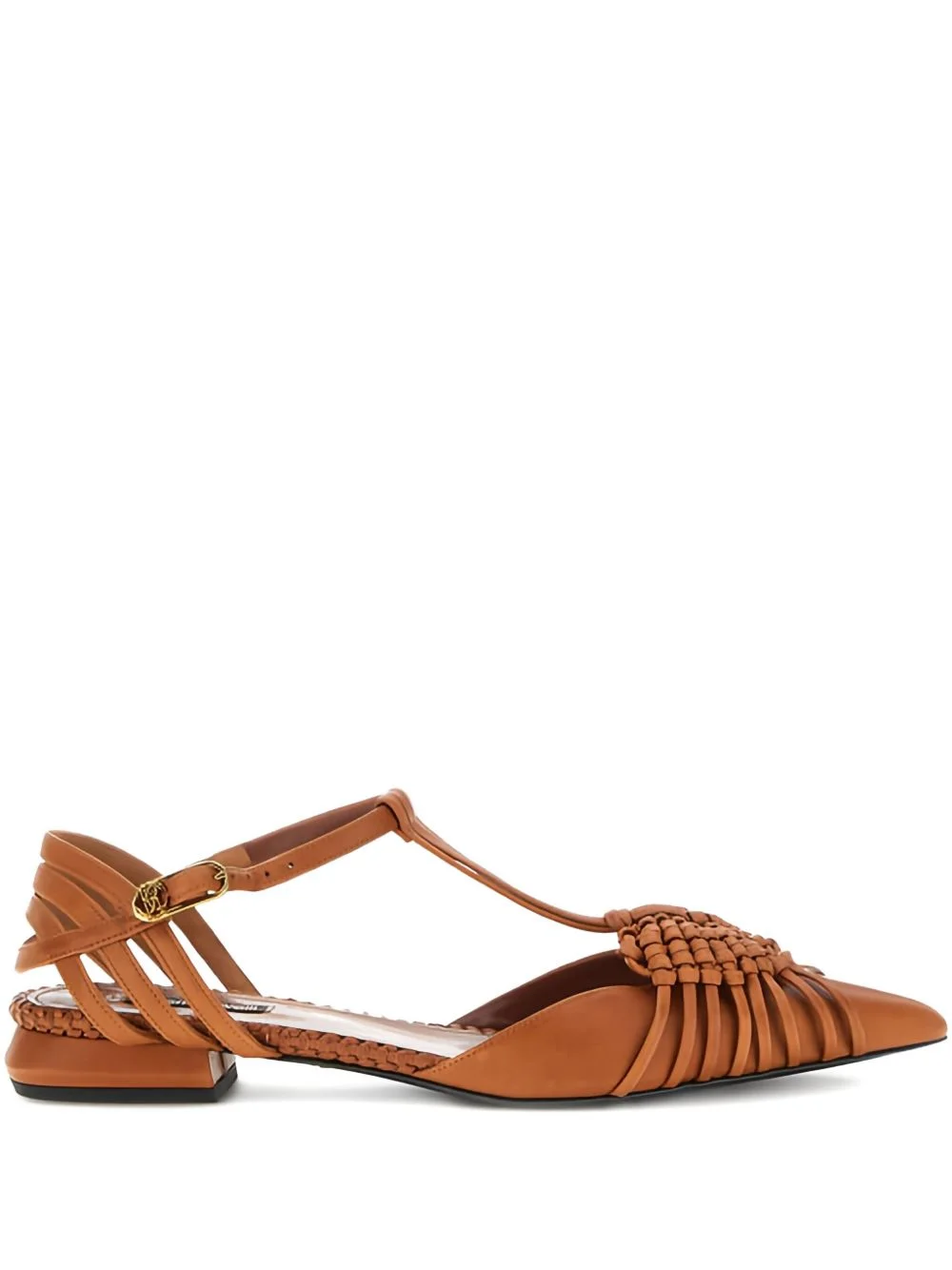 braided-leather flat pumps Highlights - Brown - Leather - Braided detail - Pointed toe - Flat sole - Buckle fastening Made in Italy Composition Outer: Bos Taurus 100% Lining: Goat Skin 100% Sole: Bos Taurus 100%