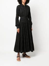 broderie anglaise A-line skirt Roberto Cavalli refrains from their typically wild print patterns in the design of this broderie anglaise A-line skirt. Woven from classic cotton in a timeless black hue, the brand's signature Tiger Tooth detail features at the waist as a subtle nod to their animal-inspired aesthetic. Made in Italy Composition Cotton 100% SIZE & FIT Model measurements Height 5 ft 10 in(1.78 m) Bust/Chest 33.07 in(84 cm) Hips 36.61 in(93 cm) Waist 24.8 in(63 cm) FittingInformation This piece fits true to size. We recommend you get your regular size Designed for a loose fit with a close fit at the waist Made with a mid-weight non-stretch fabric