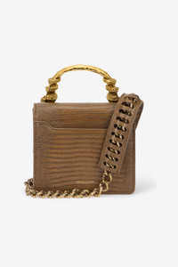ID: VWB001-PZ119-03500 The reptile universe, which has always been a source of inspiration for Roberto Cavalli, finds full expression in this bold bag thanks to the cobra-effect texture and the two sinuous golden snakes that form the handle. The accessory, which has a flap fastening design, comes with a finely-crafted chain strap that can be removed with the clasps, allowing it to be carried by hand or over the shoulder. Details - Medium bag - Can be carried over the shoulder or by hand - Cobra-effect embossing - Top handle with twisted detailing and snakes - Chain shoulder strap with a top strap and removable clasps - Flap with magnetic button - Lined interior - Roberto Cavalli logo on the back Care & maintenance Leather - Fur:Bos Taurus / Lining:60% Polyester, 40% Polyurethane