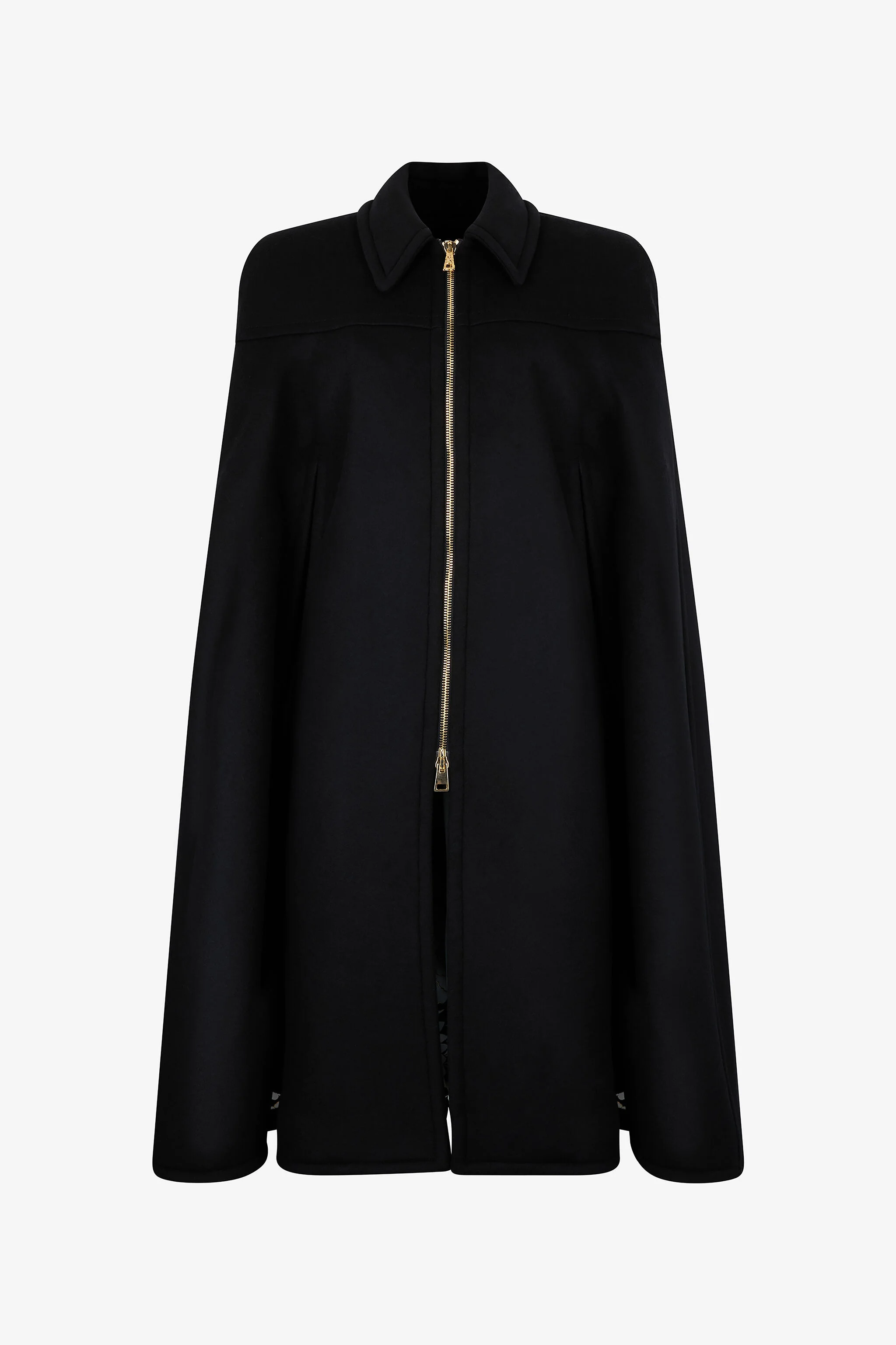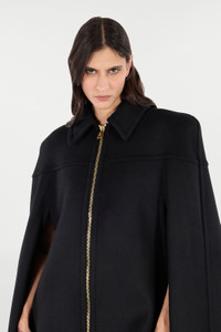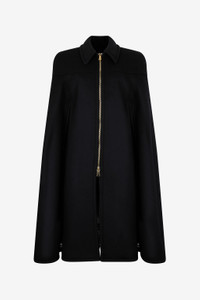 ID: VQT501-GA077-05051 Add a touch of luxury to your winter wardrobe with this cape by Roberto Cavalli made of soft and warm wool blend. The garment features a pointed collar and a double-slider zipper fastening on the front, while the interior reveals a refined contrasting floral print. Details - Wool-blend cape - Pointed collar - Inner with contrasting floral print - Two-way zipper fastening on the front