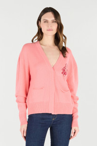 ID: VKM908-MQ013-02646 Embrace effortless elegance with this cardigan by Roberto Cavalli made of a soft blend of virgin wool and stretch cashmere. The model features two convenient front pockets with rolled openings, and is embellished with an embroidered patch with the unmistakable Mirror Snake Monogram accompanied by a floral motif that stands out on the chest. Details - Stretch wool and cashmere-blend cardigan - Long sleeves with dropped shoulders - V-neck - Embroidered patch with Mirror Snake Monogram on the chest - Two front pockets with rolled opening at the top - Rib-knit neckline, cuffs and hem - Front fastening with concealed snap buttons - Roberto Cavalli label on the inside collar - Made in Italy
