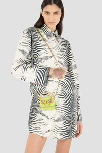 ID: UKA004-PZV98-D0113 This bag, made from genuine leather with snake scale-effect embossing, celebrates the DNA of the Roberto Cavalli Maison thanks to the logo on the back and the two crystal-studded tigers that form the top handle. The design is completed by a convenient flap fastening and a chain shoulder strap with leather top strap, which give the accessory a functional touch without sacrificing elegance. Details - Snake scale-effect leather mini Roar bag - Handle on top formed by bejeweled tigers - Clasp-removable chain strap with leather shoulder pad - Magnetic flap fastening - Roberto Cavalli logo on the back - Lined interior Care & maintenance Leather - Fur:Bos Taurus / Lining:60% Polyester, 40% Polyurethane