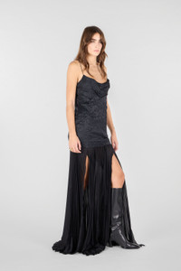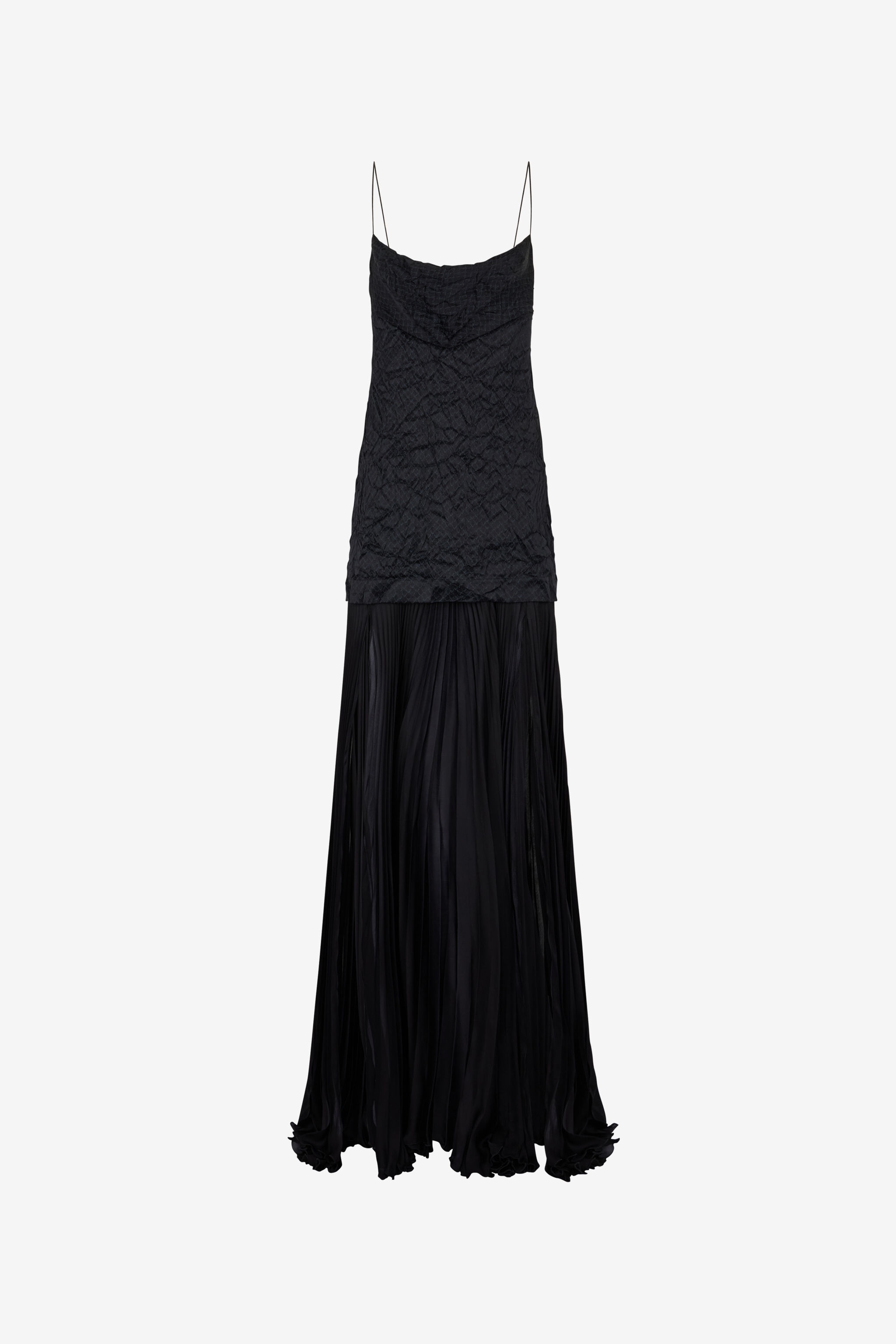 ID: UKT118-SZN57-05051 Let yourself be win over by the intriguing texture of this long pure silk dress by Roberto Cavalli. The perfect fusion of boldness and elegance is clearly conveyed in the union of the body of the dress, where the creased effect and the scales hint at snake skin, with the pleated skirt distinguished by a deep slit and gathered hem. Details - Long pure silk dress - Slight V-neck - Slim straps - Creased effect with snake scales on the body - Pleated skirt with slit - Gathered hem - Upper part of the back exposed Care & maintenance External fabric:100% Silk