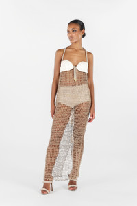 ID: UWR144-FY073-00501 This long dress is a masterpiece of craftsmanship. The crochet detailing creates a unique visual effect, perfect for those who want a sophisticated and distinctive look. Wear it for a special evening or an exclusive event, and you'll always be the center of attention. The model is 178 cm tall and wears size S / 40. Details - Elegant and refined design - High-quality crochet work - Ideal for evening events and special occasions - Made in: Italy - Perfect to combine with minimalist accessories for a sophisticated look - Hand wash recommended