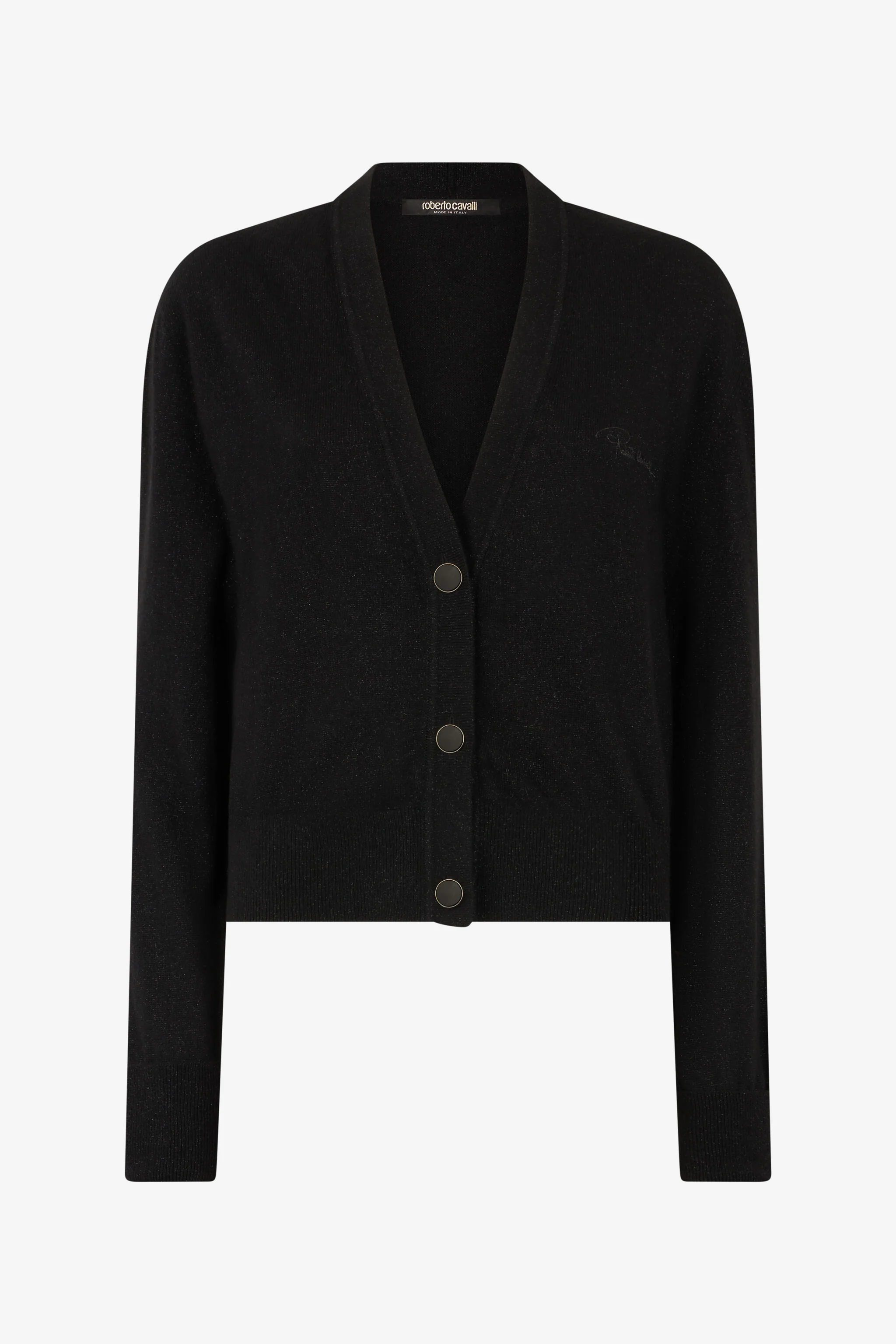 ID: UKM901-MI017-05051 This cardigan by Roberto Cavalli with a clean and simple design is an authentic feminine wardrobe staple, embellished with a signature logo embroidered on the chest and a metallic fiber thread for a sparkling touch. Details - Wool-blend cardigan - Long sleeves - Embroidered Roberto Cavalli logo on the chest - Front button fastening - Roberto Cavalli label on the inside collar Care & maintenance External fabric:36% Virgin wool, 27% Viscose / Rayon, 21% Polybutylene terephthalate, 9% Cashmere, 7% Metal - Metallic - Metallised