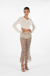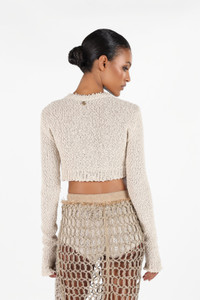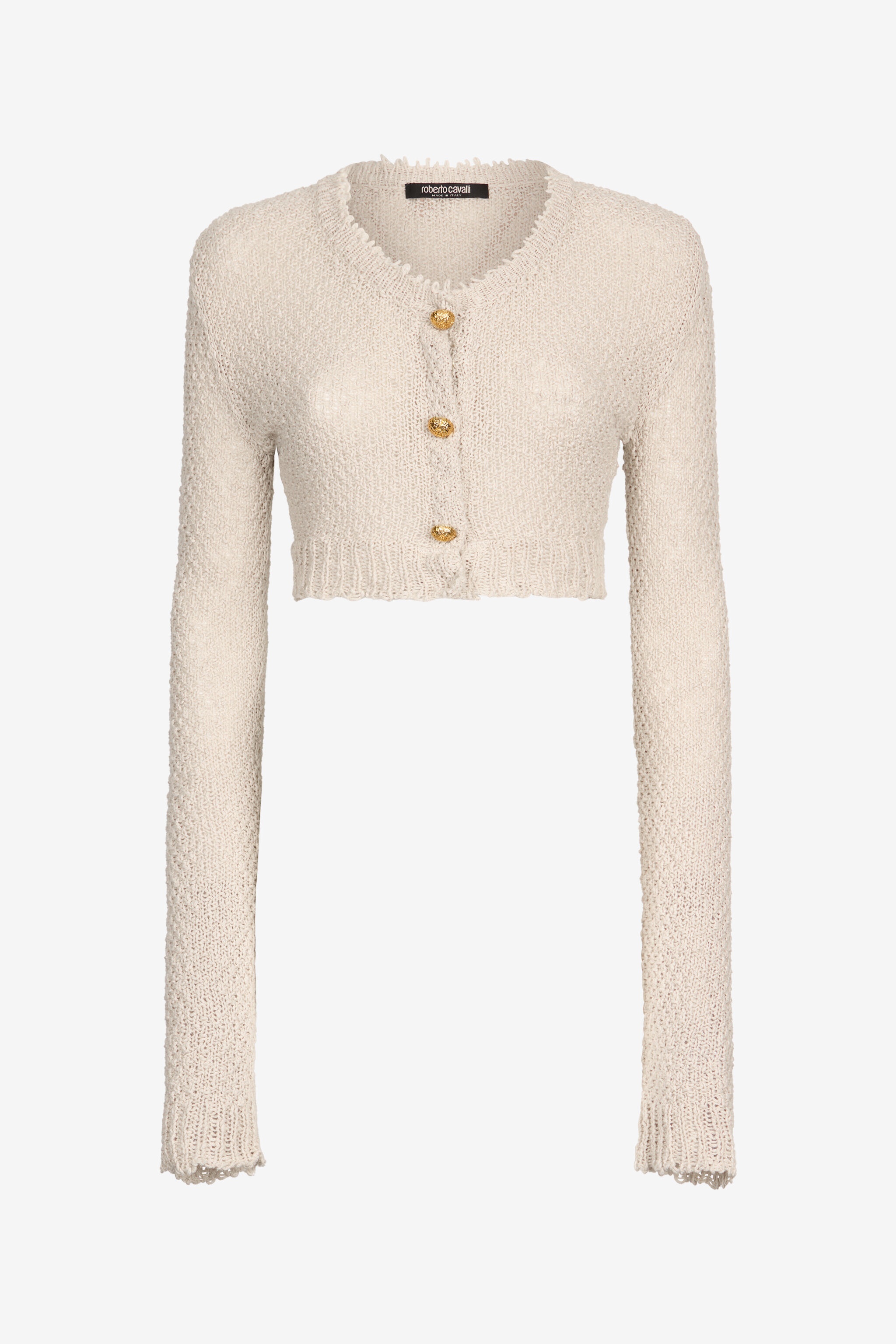 ID: UWM900-ME005-00503 This cropped cardigan embodies effortless elegance, perfect for adding a touch of refinement to any outfit. The golden buttons embellish the garment, while its short silhouette makes it ideal to pair with high-waisted skirts or tailored trousers. The model is 178 cm tall and wears size S / 40. Details - Cropped cardigan with round neckline - Front closure with gold buttons - Crop design for a modern look - Made in: Italy