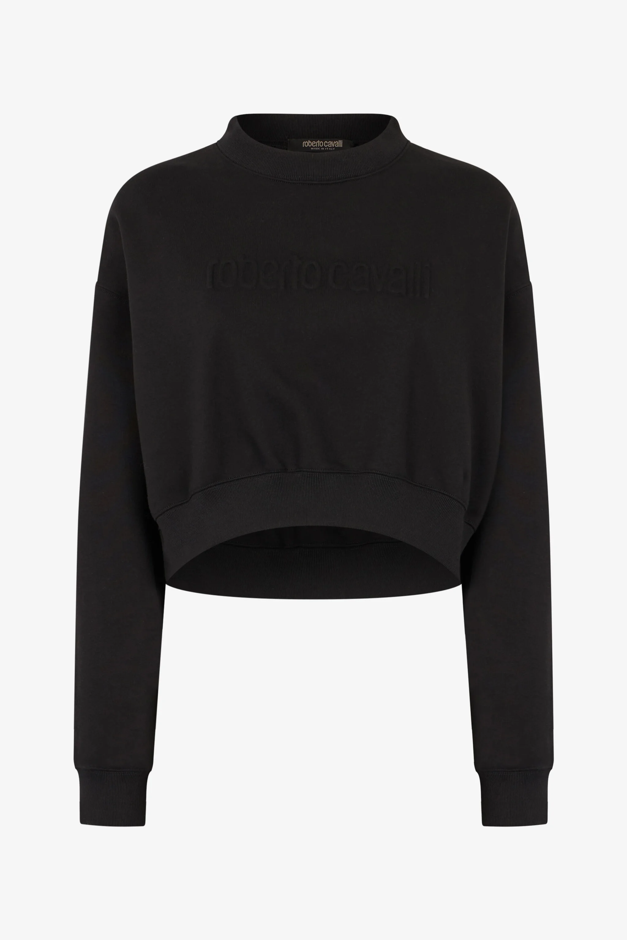 ID: UKT66A-CF057-05051 Embrace effortless elegance with this cropped sweatshirt with a minimalist cut featuring the emblematic Roberto Cavalli logo embroidered in matching thread on the chest. An authentic women's wardrobe staple that will instantly elevate your everyday outfits. Details - Cropped sweatshirt - Embroidered Roberto Cavalli logo on the chest - Stand-up collar - Long sleeves with dropped shoulders - Rib-knit neck, cuffs and hem - Roberto Cavalli label on the inside collar - Made in Italy Care & maintenance External fabric:100% Cotton / Embroidery - Decoration:75% Polyurethane, 25% Polyester