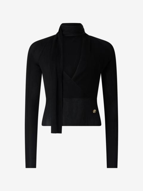 ID: VWM603-MH014-02065 This long-sleeve sweater by Roberto Cavalli embodies effortless, contemporary luxury. The wrap-over design of the model creates a deep V-neckline topped with an elegant lavalliere to be wrapped around the neck, while the refined rib-knit adds an extra touch of comfort to the garment. The garment is enhanced at the front with the iconic RC Monogram in gold-tone metal, applied at the hem. Details - Long-sleeved sweater - Wrap-over design - Plunging V-neck - Matching lavalliere - Rib knit - Metal RC Monogram on the hem - Branded label inside the collar - Made in Italy Care & maintenance External fabric:100% Viscose / Rayon