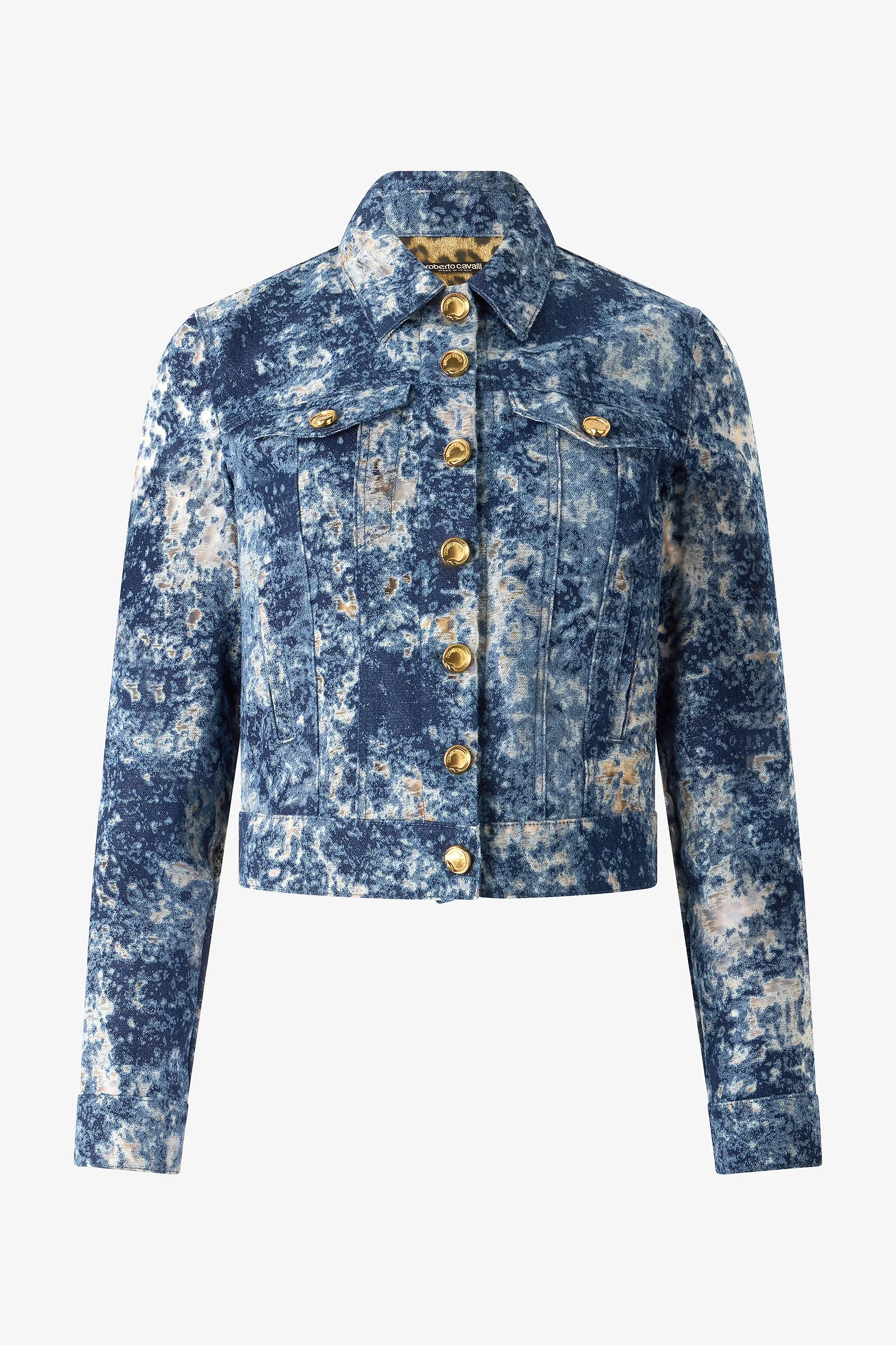 ID: VKJ450-VT012-04564 Make a real style statement with this Roberto Cavalli denim jacket, featuring an eye-catching mottled-effect pattern created by discoloration and abrasions that give a glimpse of the iconic Jaguar Skin motif on the inside of the garment. The model also features two side welt pockets and two breast pockets with flap and button decorated with logo and snake, an expression of the brand's DNA, also present on the buttons of the front fastening. Details - Cotton-blend denim jacket - Discoloration and abrasions for an all-over mottled effect - Jaguar Skin print on the inside - Pointed collar - Long sleeves - Welt side pockets - Breast pockets with flap and branded button - Front branded button fastening - Roberto Cavalli label on the inside collar - Made in Italy