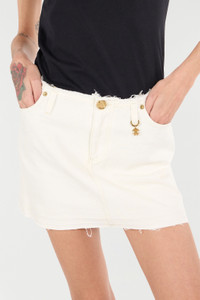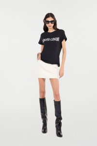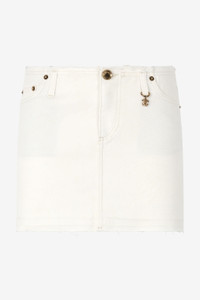 ID: UKJ321-KGN53-09088 Perfect for adding a touch of contemporary sensuality to everyday looks, this slightly stretch denim miniskirt from Roberto Cavalli is finished with a slightly frayed waist and a raw-cut hem. The five-pocket model is also completed by the brand’s distinctive custom details, such as the branded label on the back, the branded rivets on the pockets, the button with snake and logo on the front fastening and the charm with the iconic gold-tone Mirror Snake Monogram hanging from one of the belt loops. Details - Slightly stretch denim miniskirt - Five-pocket design - Frayed top trim - Raw-cut hem - Roberto Cavalli logo on the rivets, back label and front button with snake - Golden charm with Mirror Snake Monogram on a belt loop - Concealed zipper and button fastening - Cotton-blend lining Care & maintenance External fabric:98% Cotton, 2% Elastane / Lining:65% Polyester, 35% Cotton