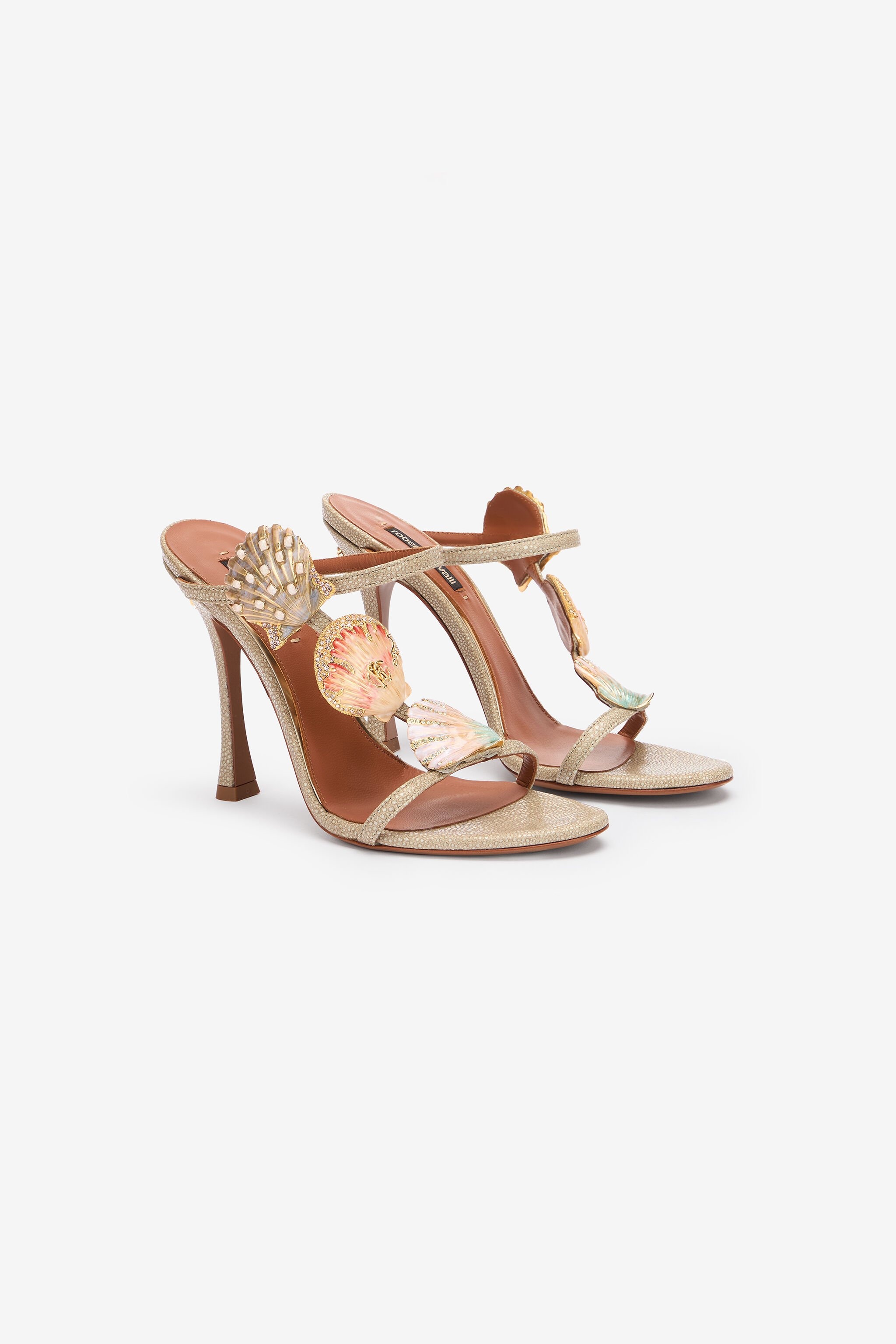 ID: UWS003-PZI07-00504 The aquatic world takes center stage on these refined Roberto Cavalli sandals. In fact, this style is distinguished by the all-over dappled pattern that recalls the texture of coral, while the straps are embellished with elegant shells in soft and nuanced tones and enriched by shiny crystals. The must-have Mirror Snake Monogram, an expression of the brand’s DNA, appears in the form of a small golden applique on one of the shells and on the back of the sandals. Details - Leather sandals with heels - All-over dappled pattern - Crystal-embellished shell straps - Mirror Snake Monogram on the back and on one shell - Leather-lined insole and Roberto Cavalli label - Leather sole - Made in Italy Care & maintenance Lining:100% Capra hircus linneaus / Outer sole:100% Bos Taurus / Upper:100% Bos Taurus